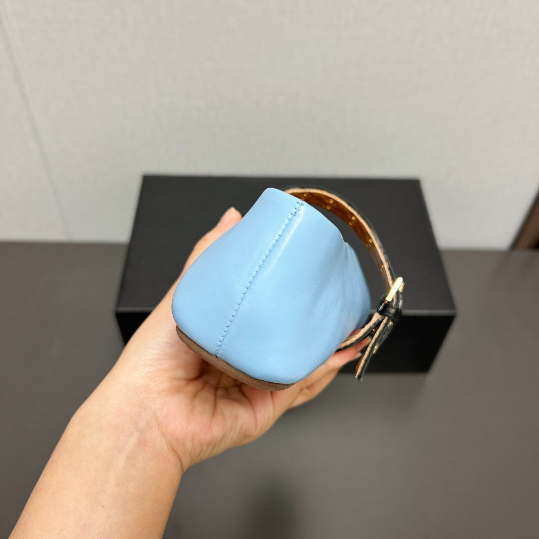 ALAIA MARY JANE SHOES IN LIGHT BLUE LAMBSKIN SILVER HARDWARE