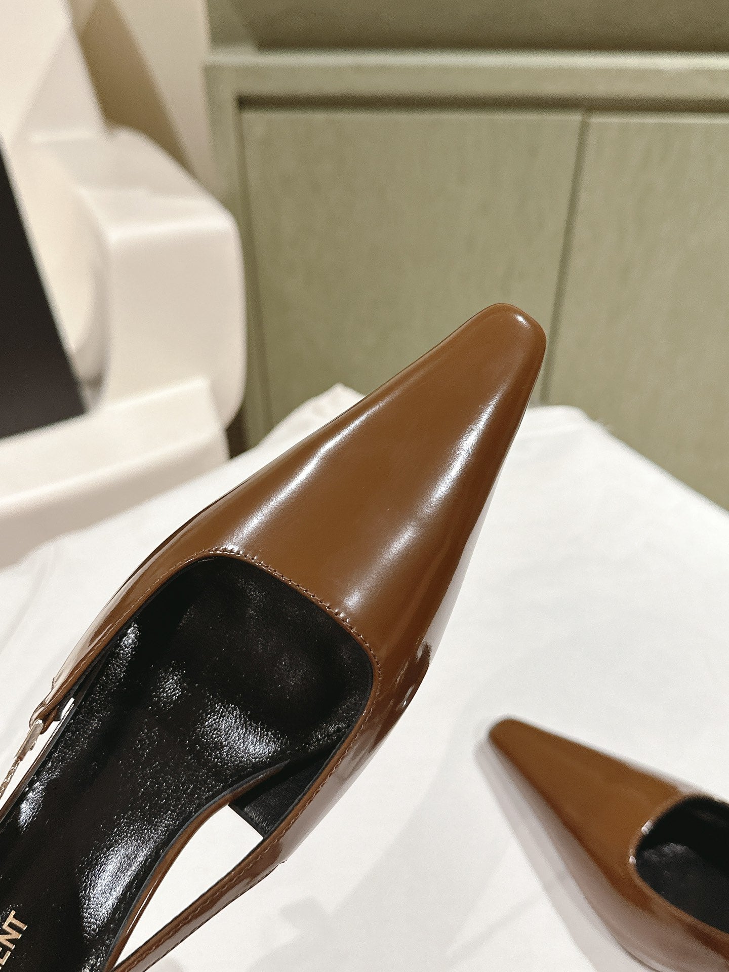 BLAKE SLINGBACK PUMPS 80 IN BROWN PATENT LEATHER