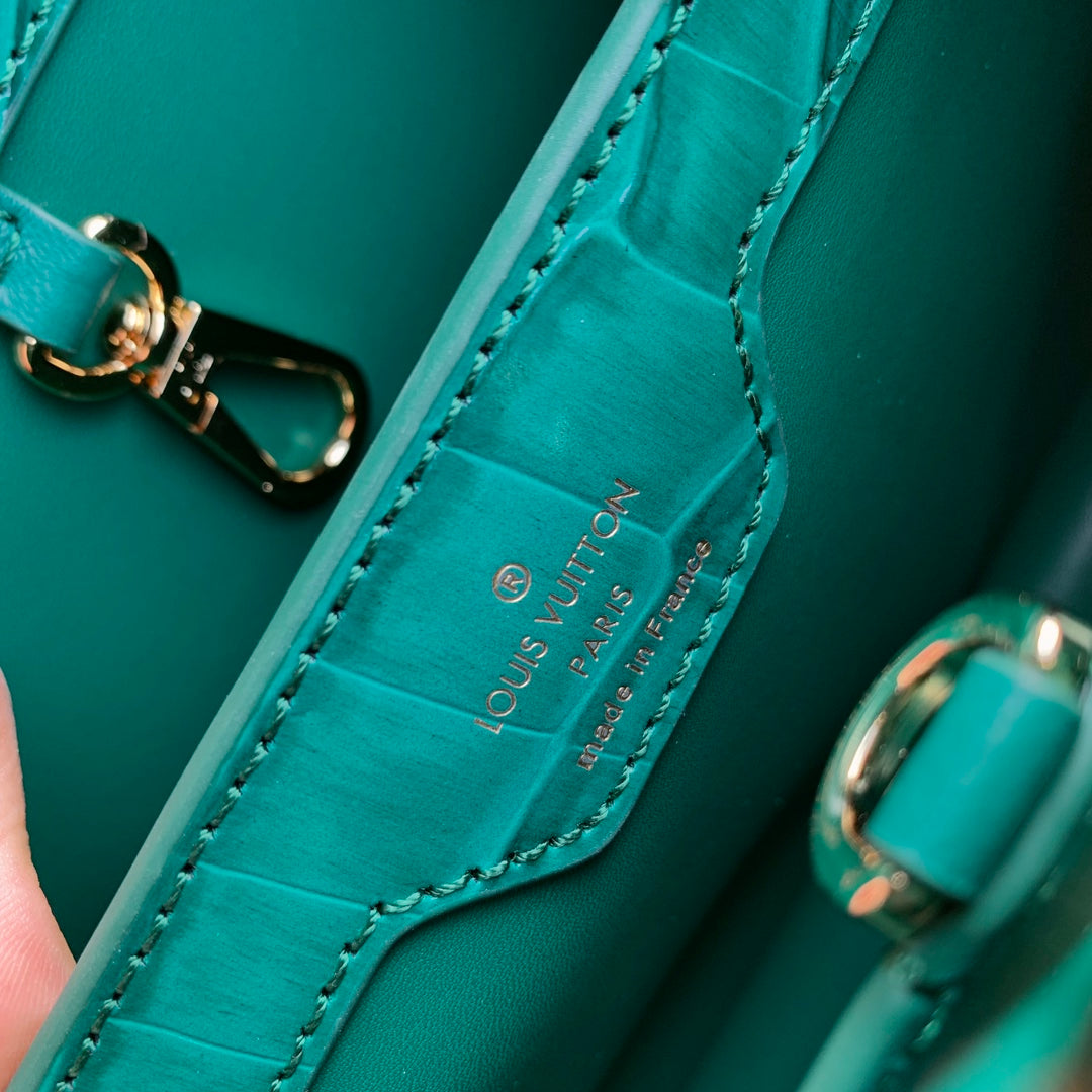 CAPUCINES BB 27 GREEN TAURILLON GOLD HARDWARE