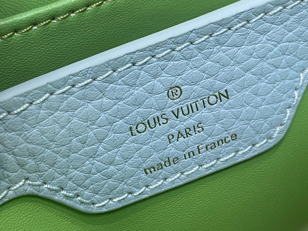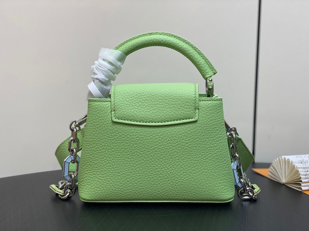 CAPUCINES MINI 21 GREEN TAURILLON TURQUOISE SILVER HARDWARE