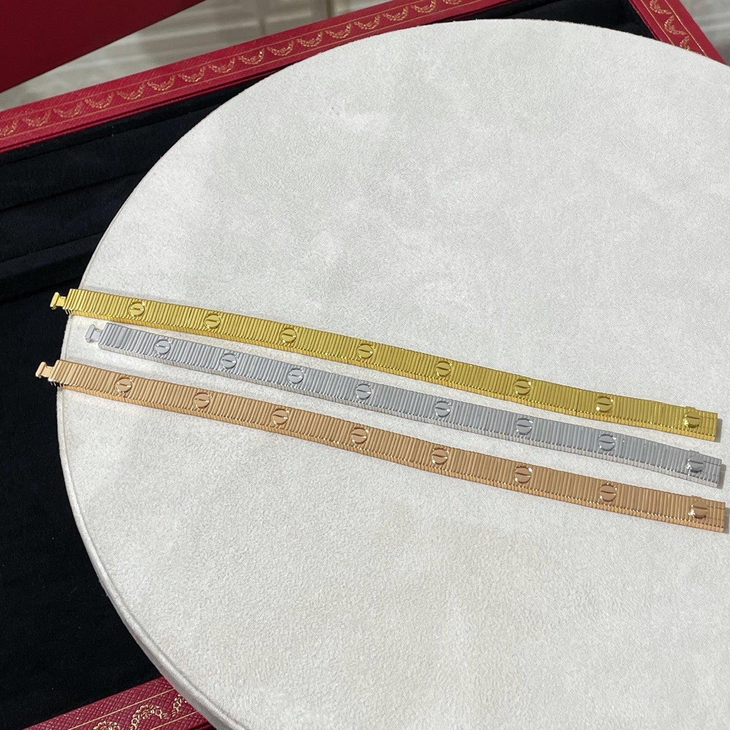 For LOVE bracelet, the usual bracelet sizing rules differ slightly due to the design of the bracelet. We recommends adding one centimeter for a tight fit and two centimeters for a looser fit.