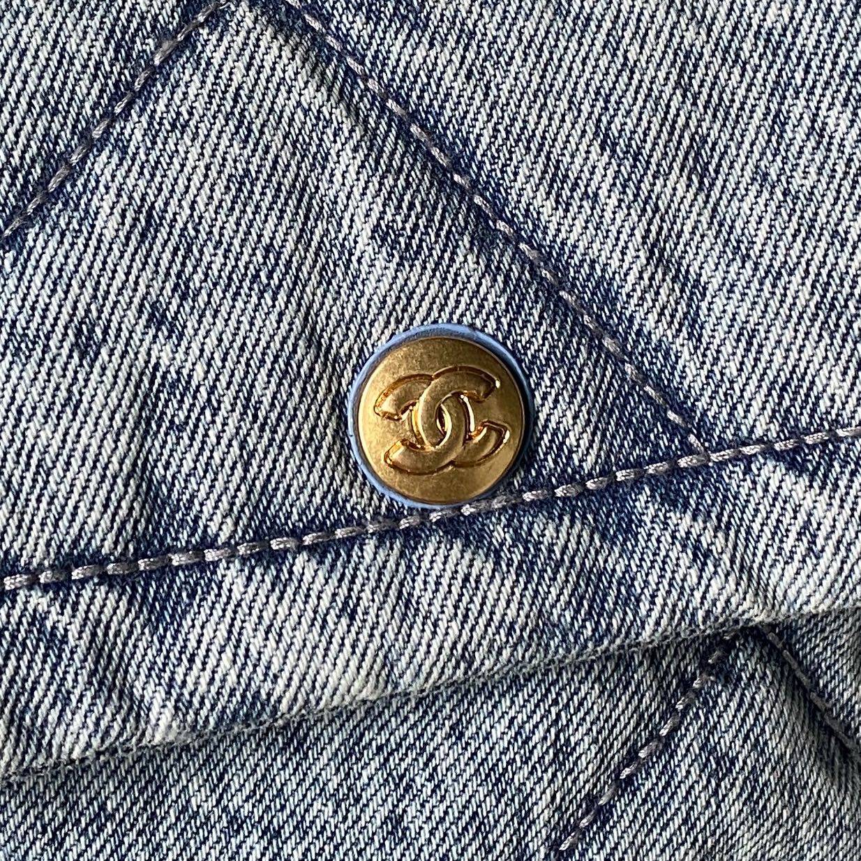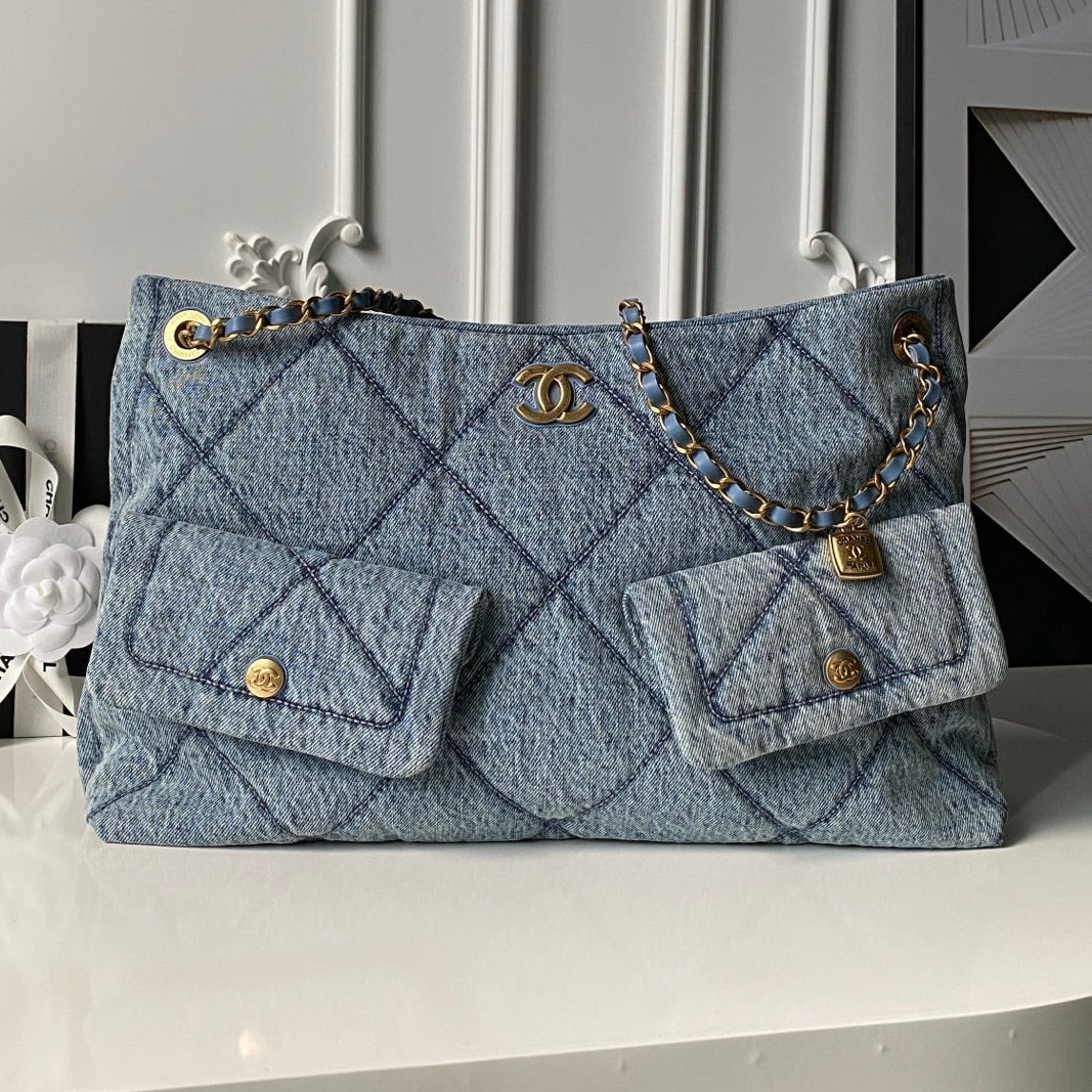 CC 2025 Classic Flap Bag Blue Denim Fabric Gold Hardware 296416