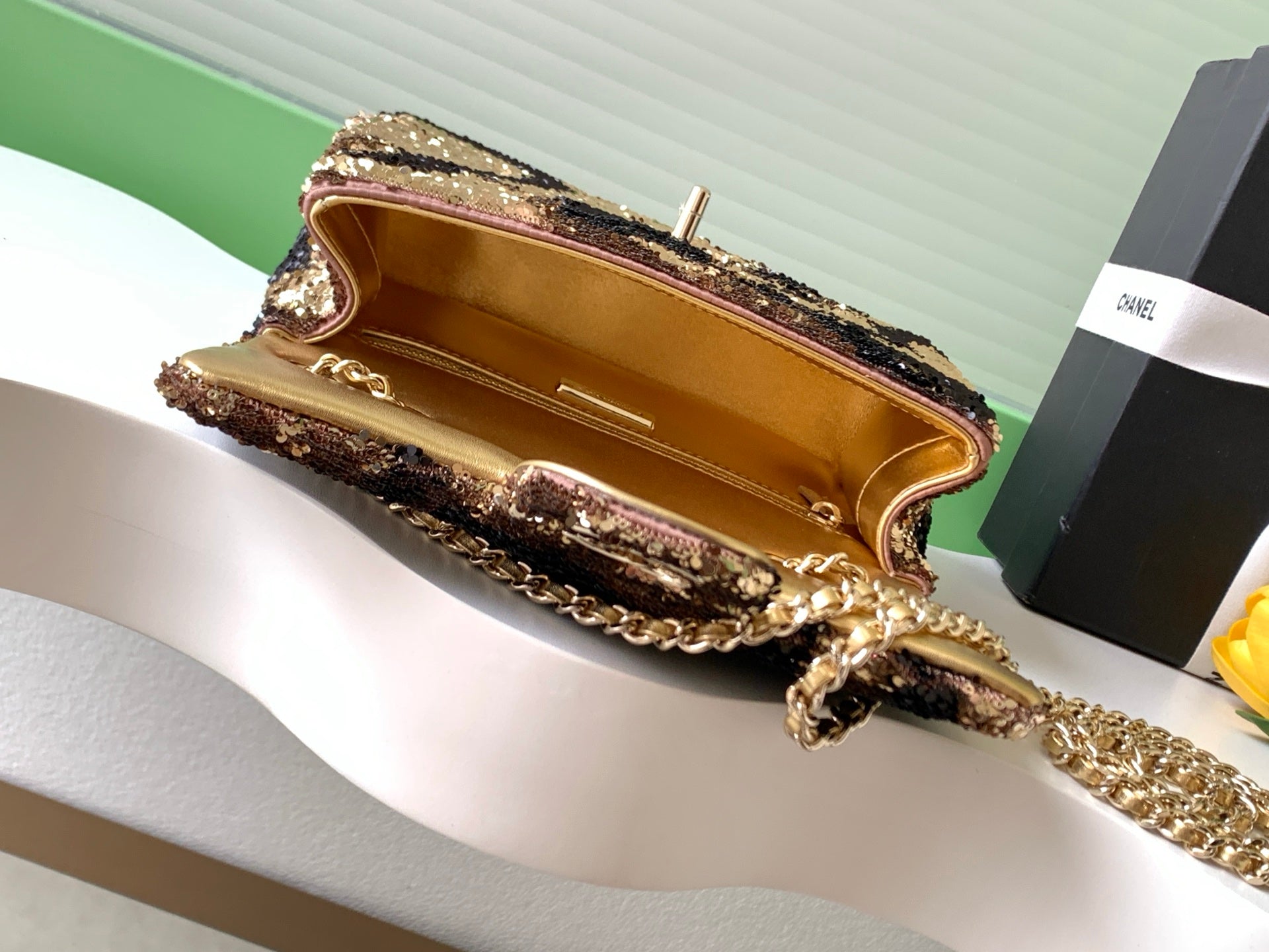 CC 2025 Flap Bag Brown Gold Sequin 298199