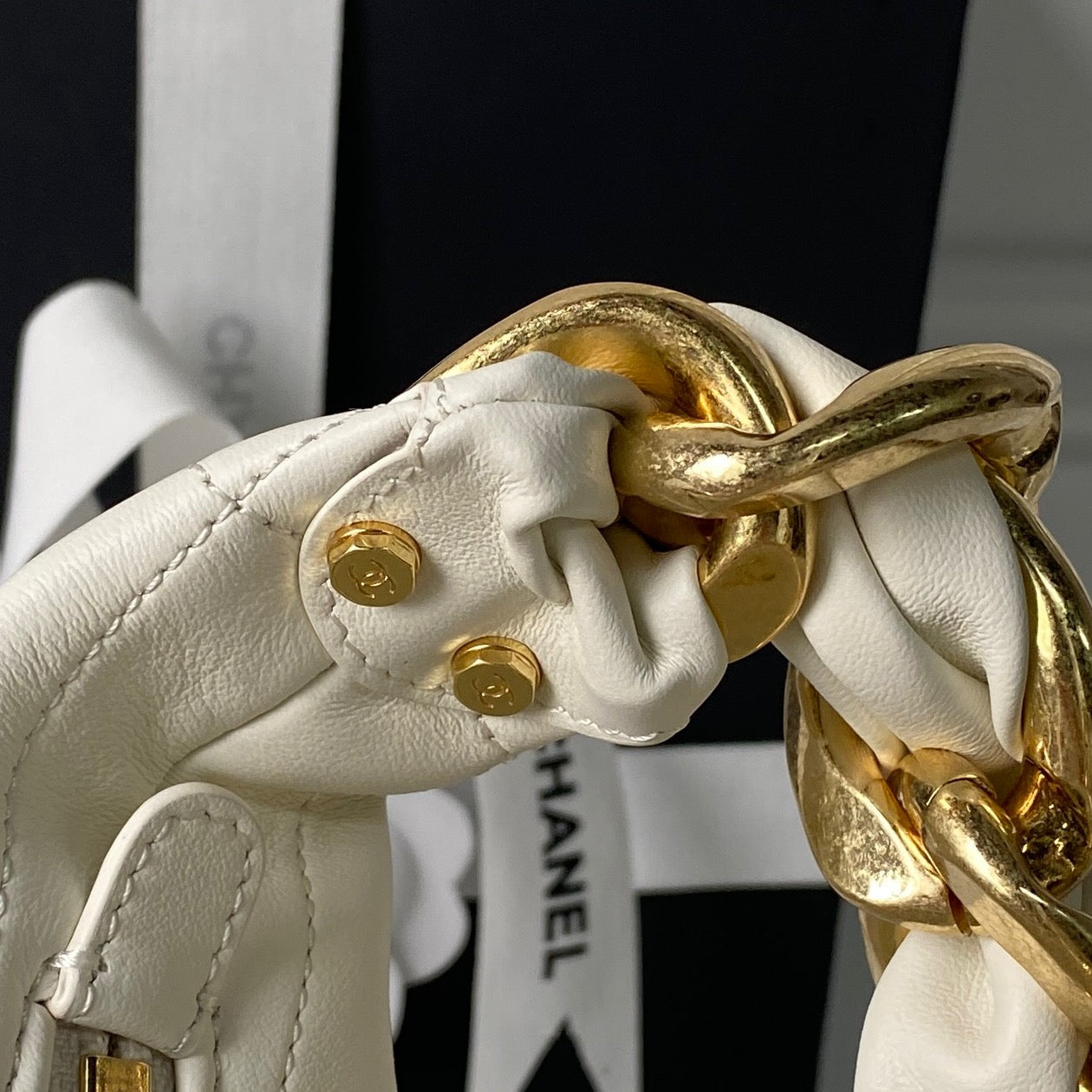 CC 2025 Hobo Bag White Calfskin Gold Hardware 298486