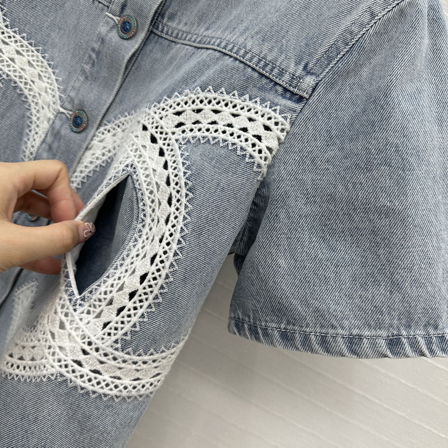 CC 25 Round Neck Short-sleeved Jacket Light Blue Denim Cotton
