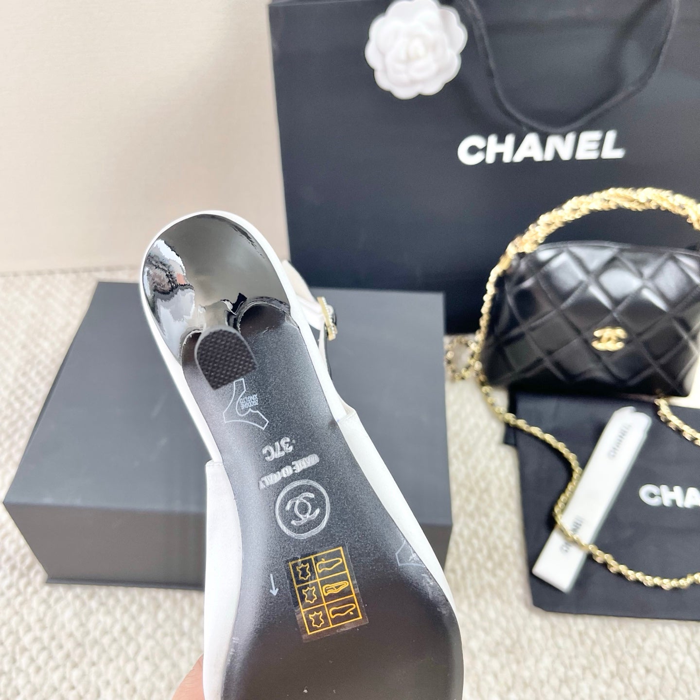 CC 25 Slingback High Heel White Silk 330923