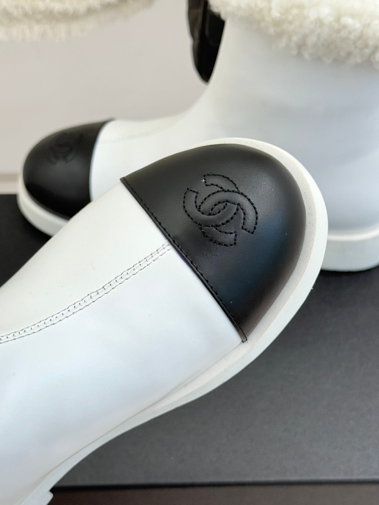 CC 25s Ankle Boots White Black Leather Wool 512070
