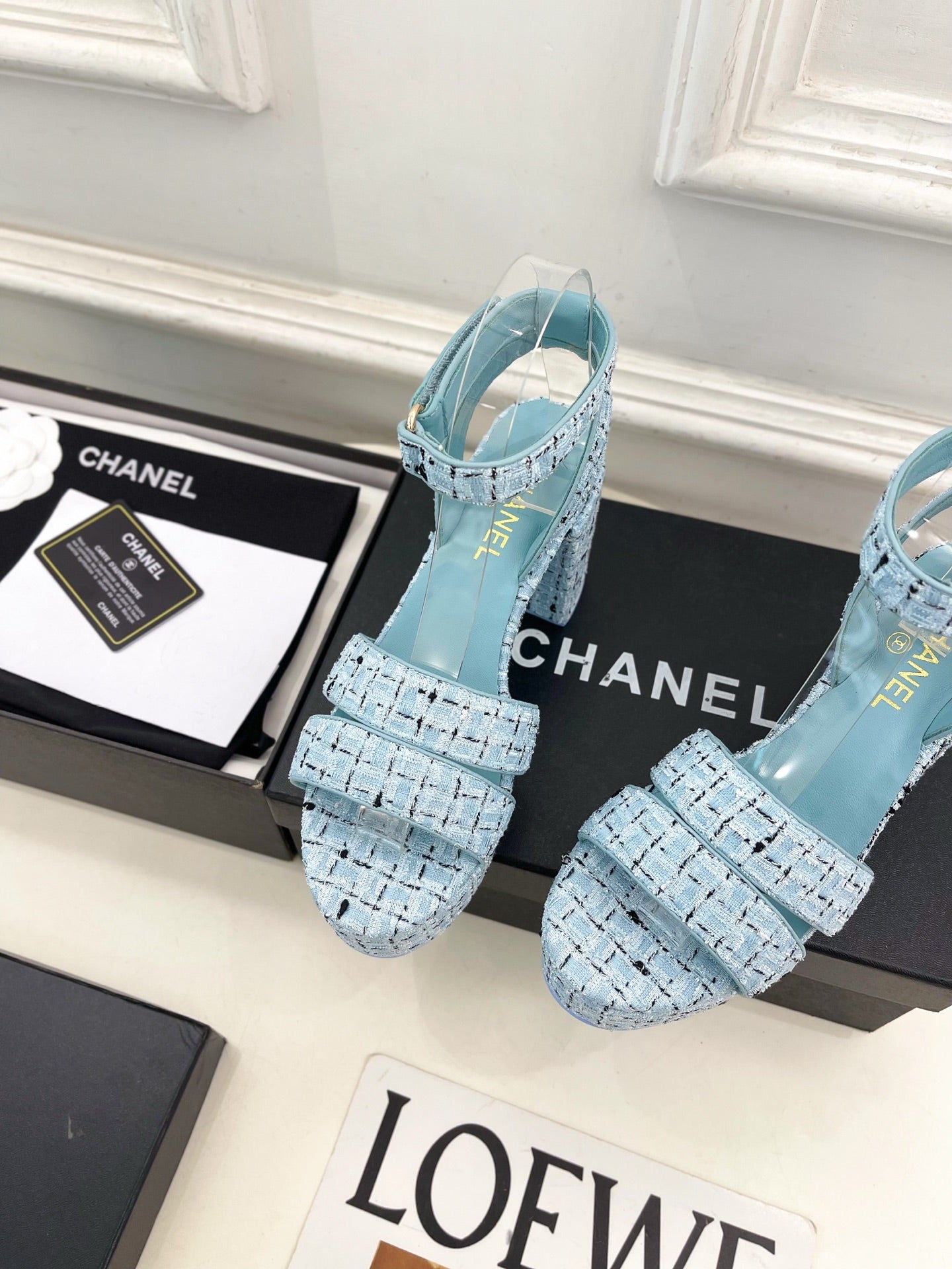 CC 26s HighHeeled Platform Sandals 85 Light Blue Tweed 631865