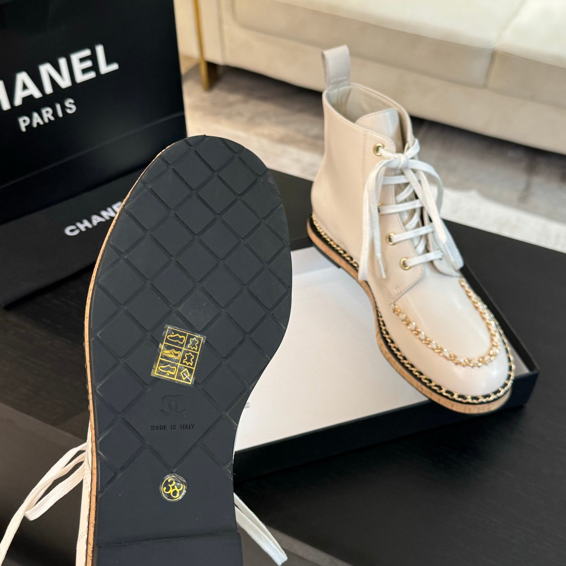 CC Ankle Boots White With Chain Calfskin