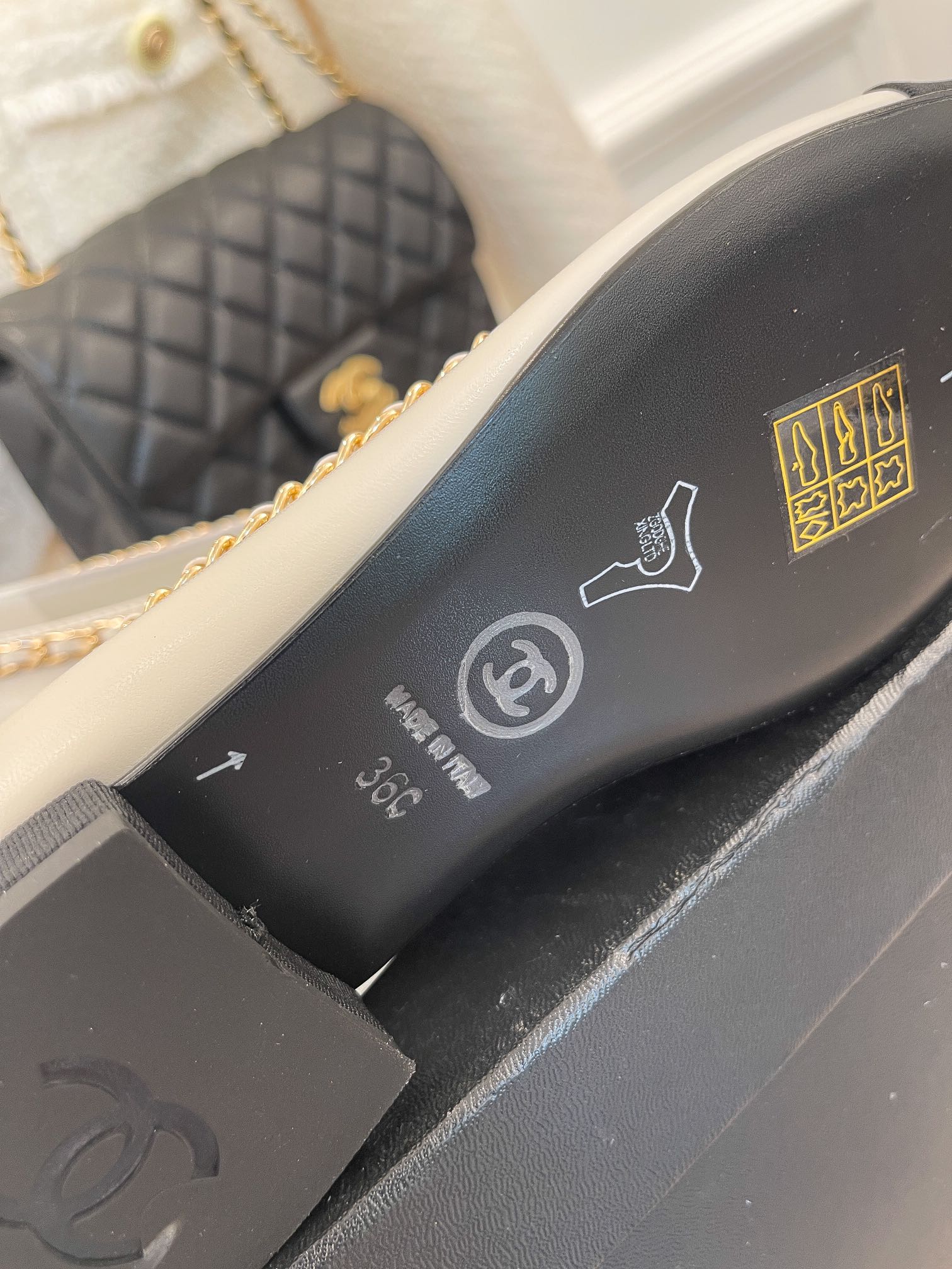 CC Ballet Flats 25mm White Bow Tie Chain Lambskin
