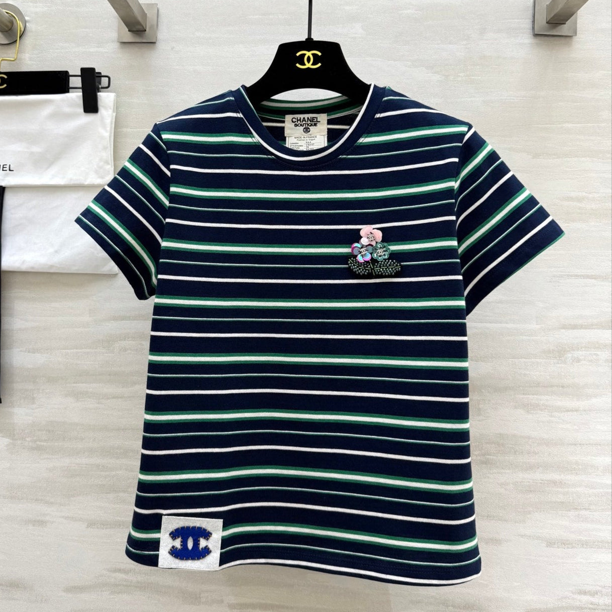 CC Beaded Flowers Shirt Dark Blue Cotton