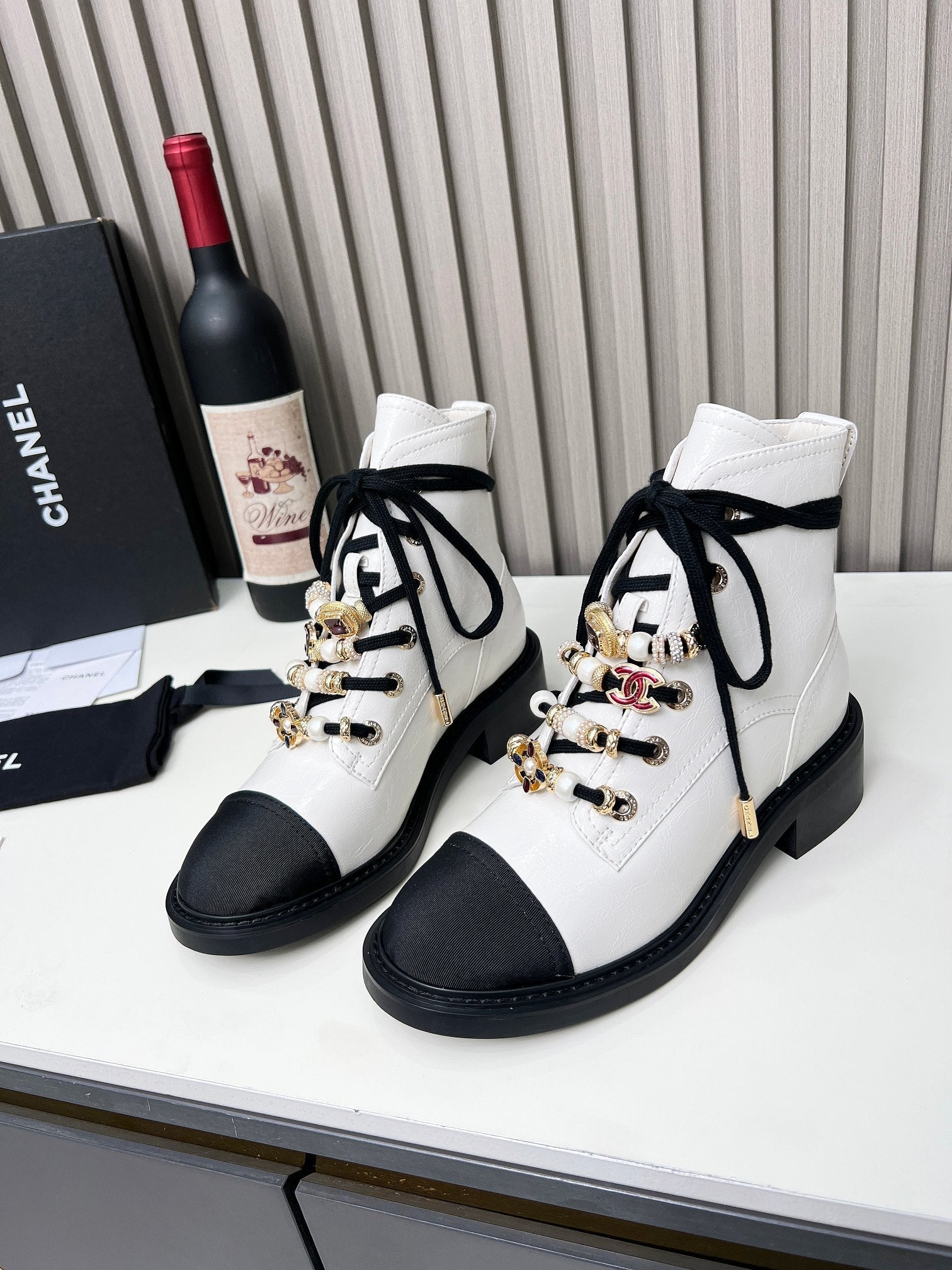 CC Combat Boots 50mm White Black Calfskin And Lycra Fabric 944550