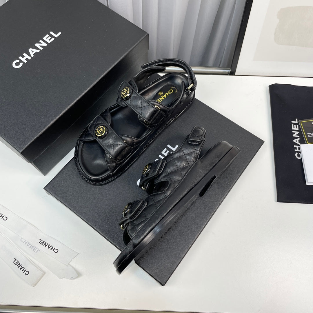 cc dad sandals black grained calfskin enamel logo