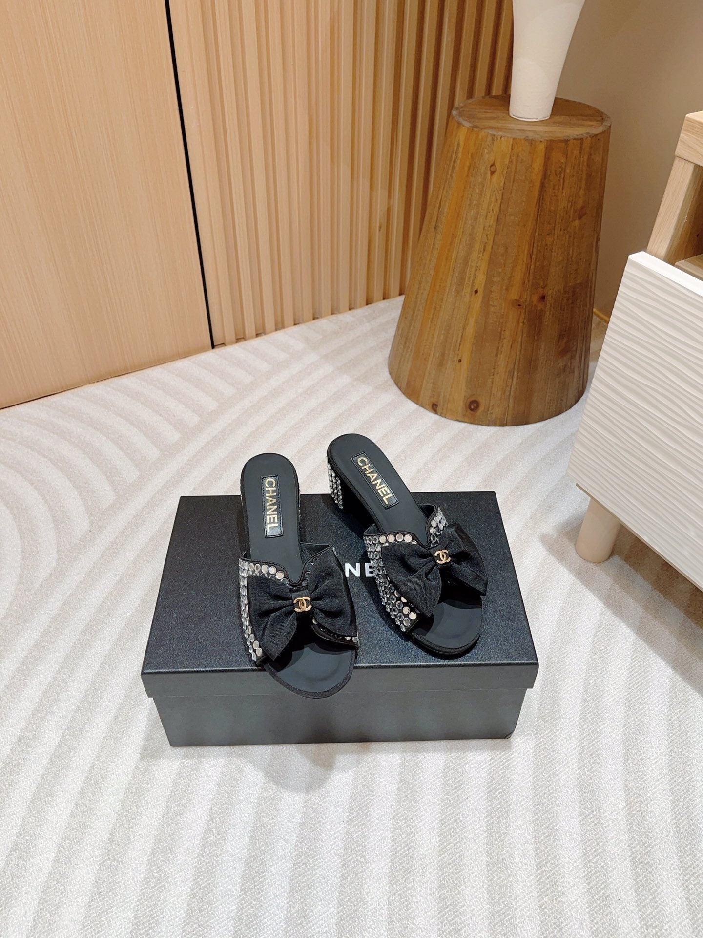 - Upper: Satin with rhinestones