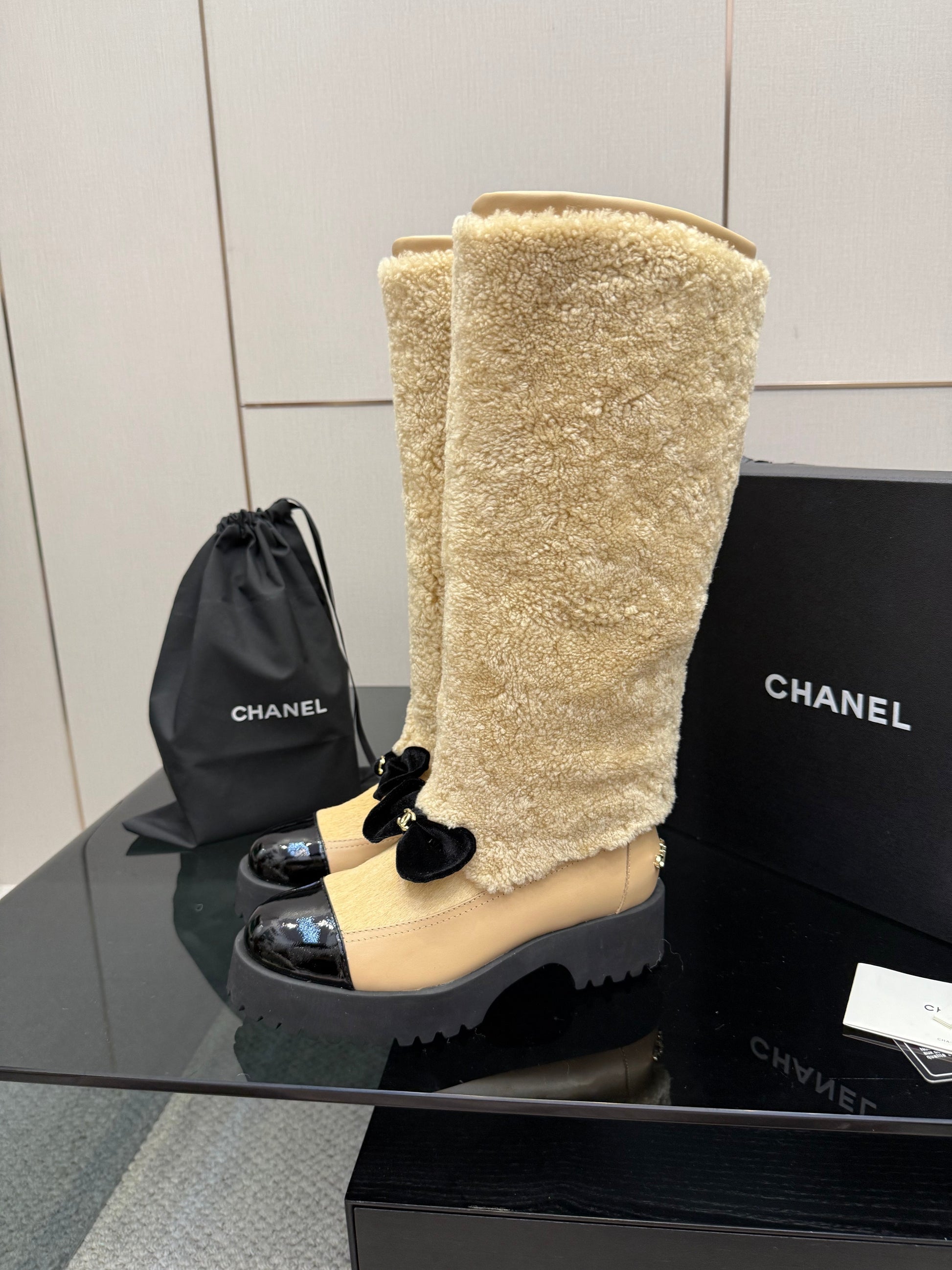 CC knee-high boots beige sheepskin and wool 532191