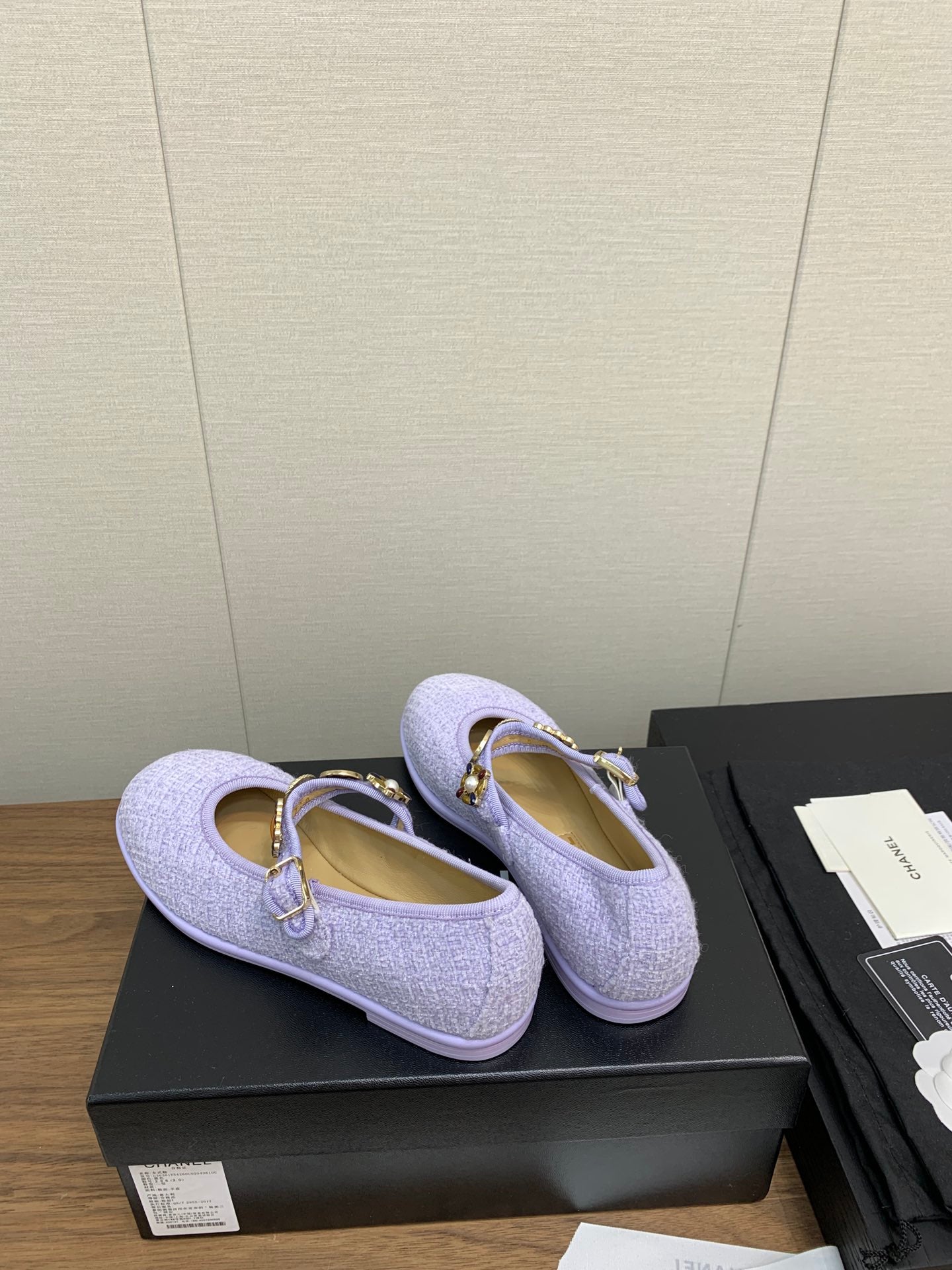 CC MARY JANES VIOLET WOOL TWEED AND FABRIC