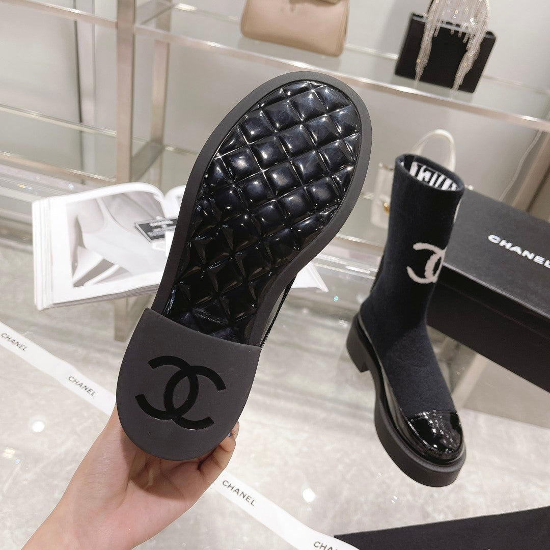 CC Short Boots 45mm Black Stretch Wool And Cowhide