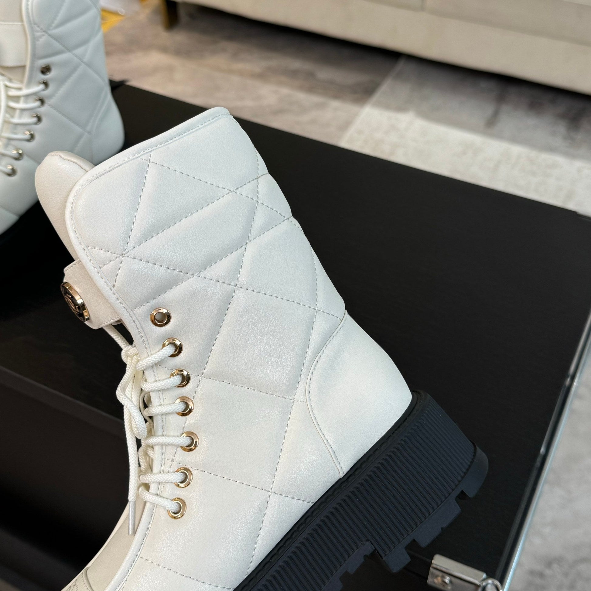 CC Short Boots White Quilted Cowhide