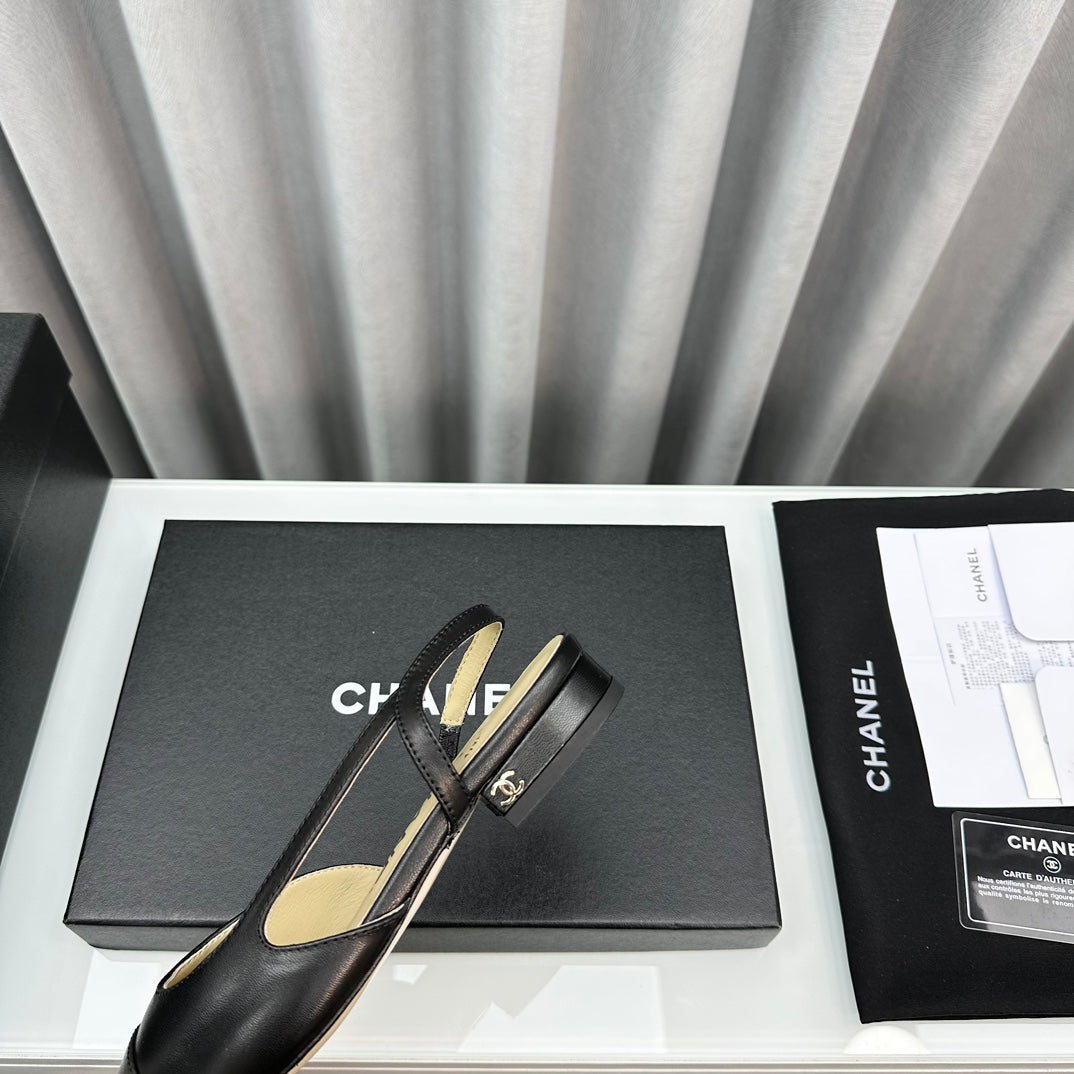 CC Slingback Flat Black Beige Lambskin