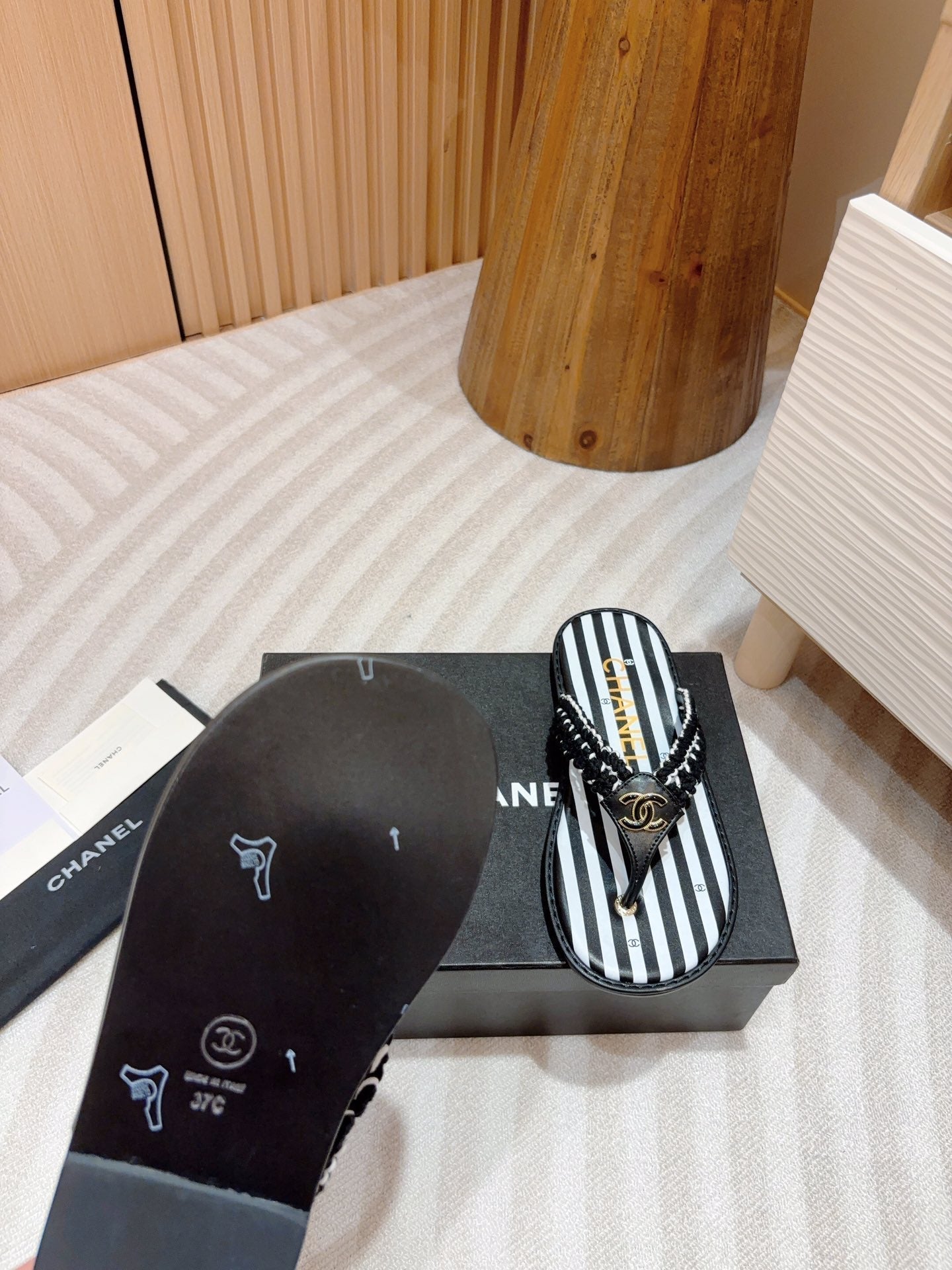 CC WOVEN FLIP FLOP WHITE MIX BLACK SHEEPSKIN