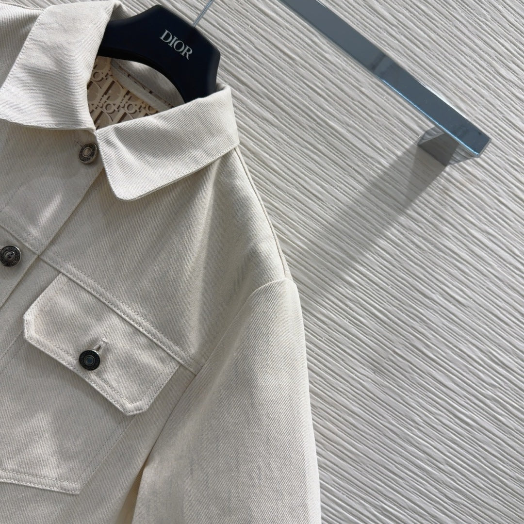 CD 2025 Short-sleeved Jacket Light Beige Cotton