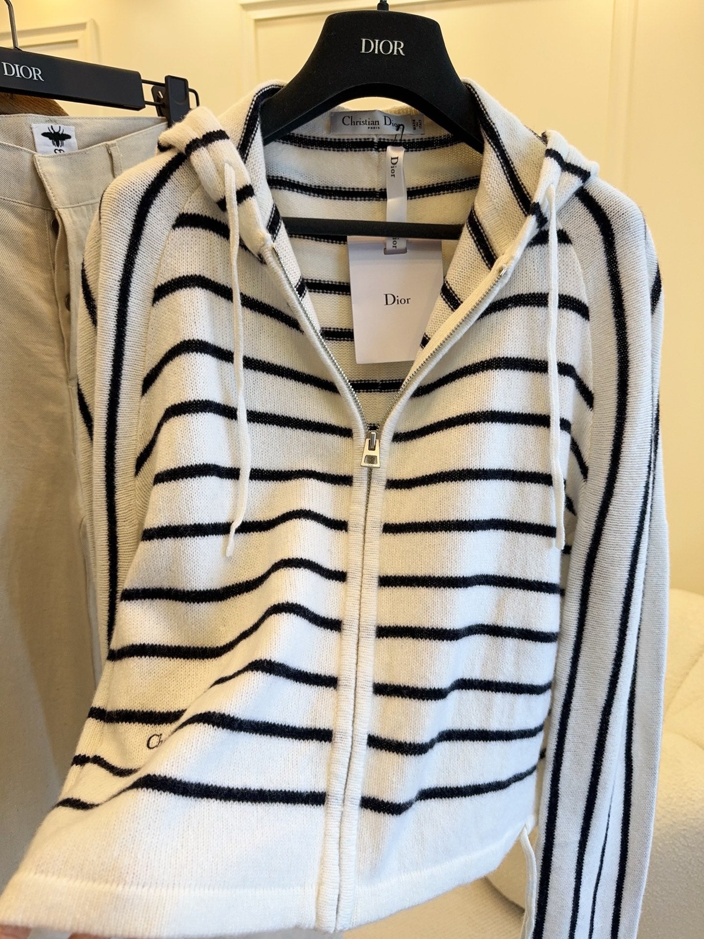 CD 25 Hooded Cardigan White Black Wool