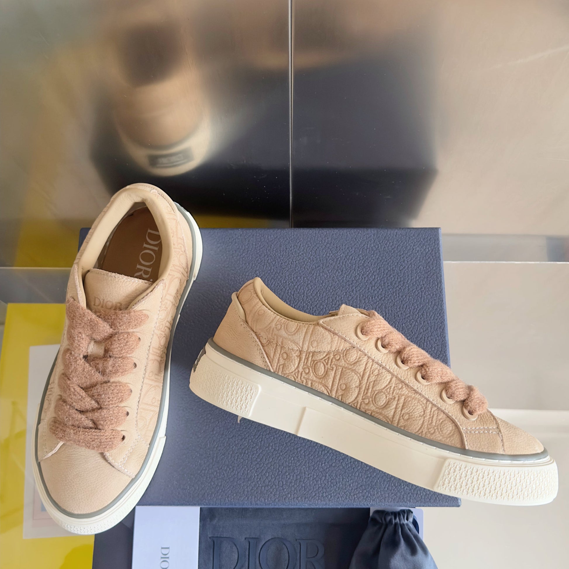 CD 26 B33 Platform Sneakers Light Brown Monogram Cowhide 609189