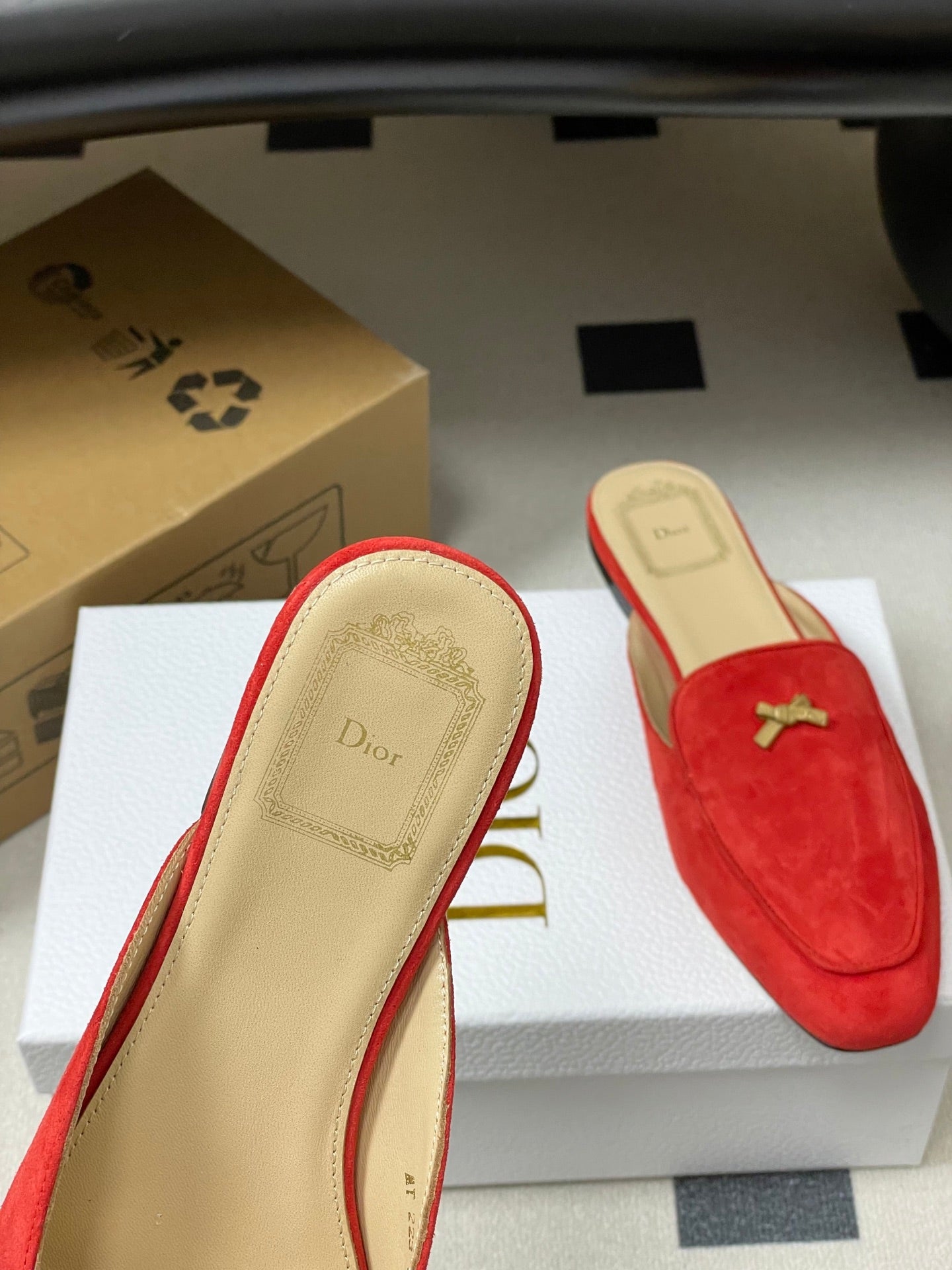 CD 26 Bow Mules Red Beige Suede Cowhide 632591
