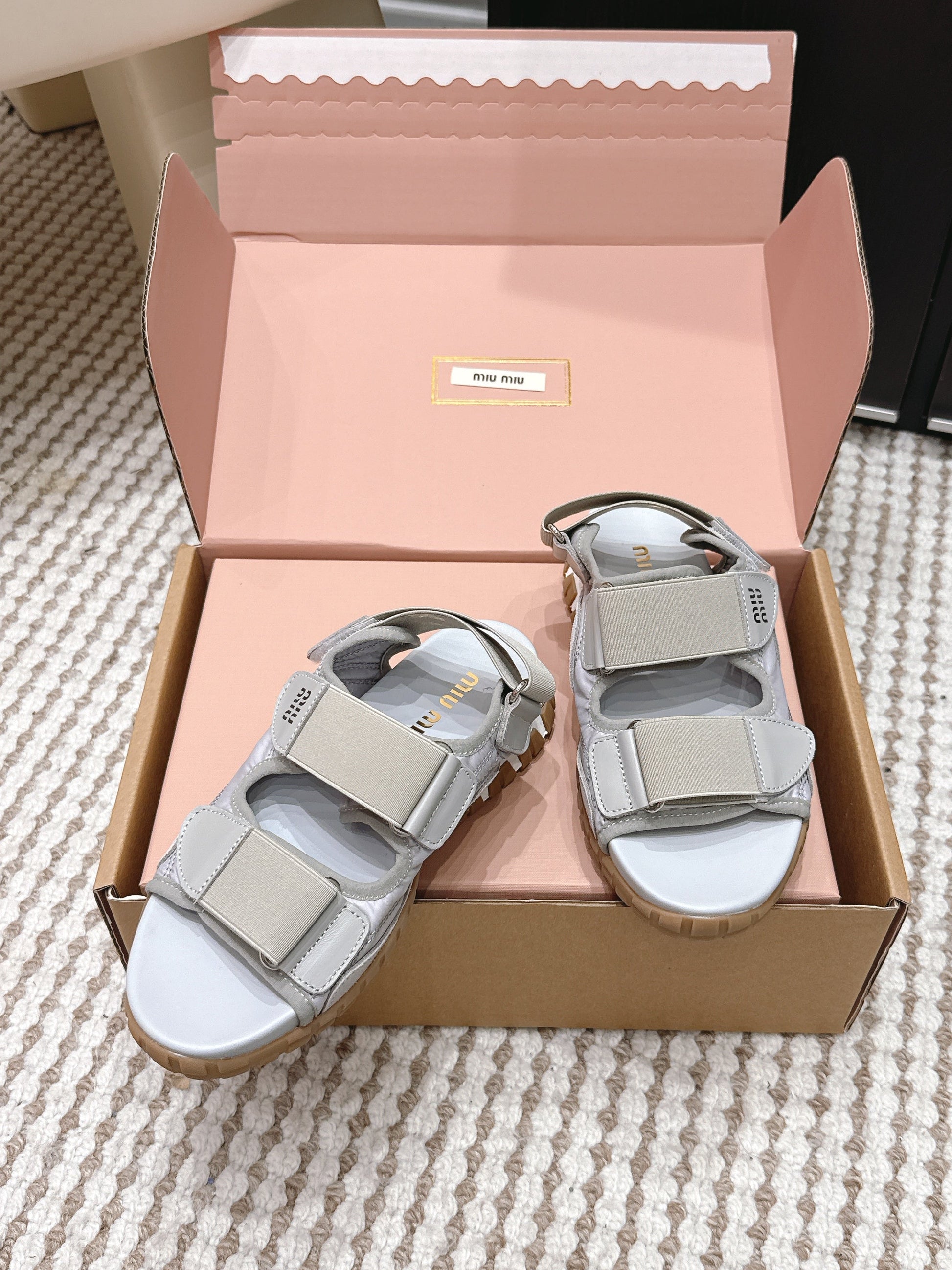 MIU 26 Platform Sandals Light Greige Leather 632332