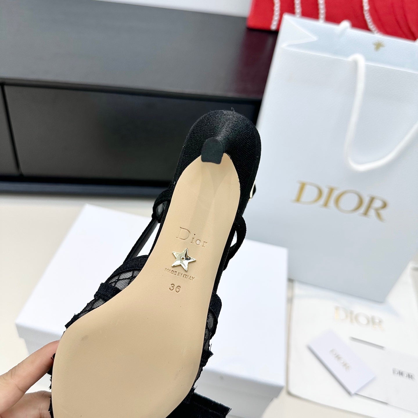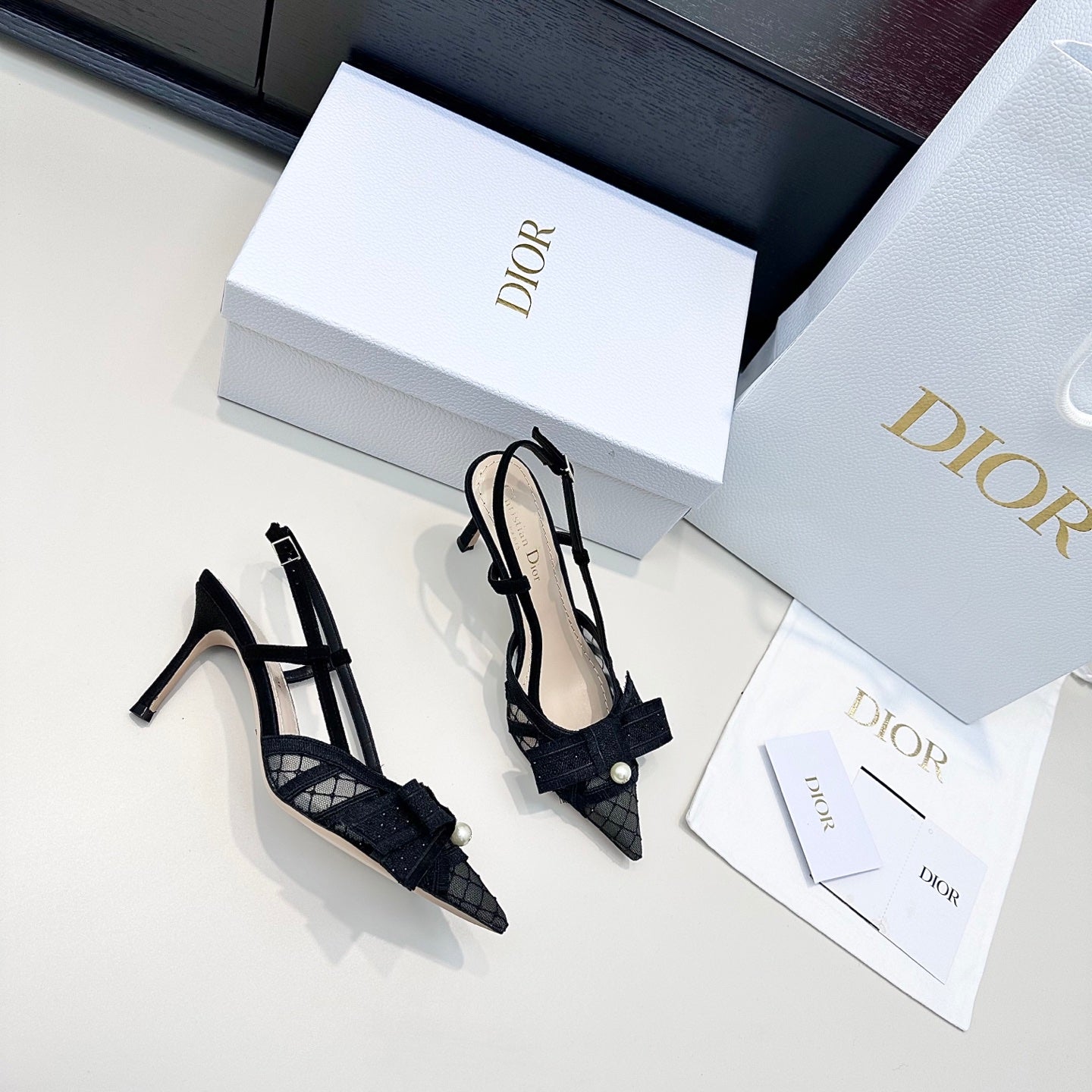 CD 26 Slingback 85 Black Mesh Leather 622212