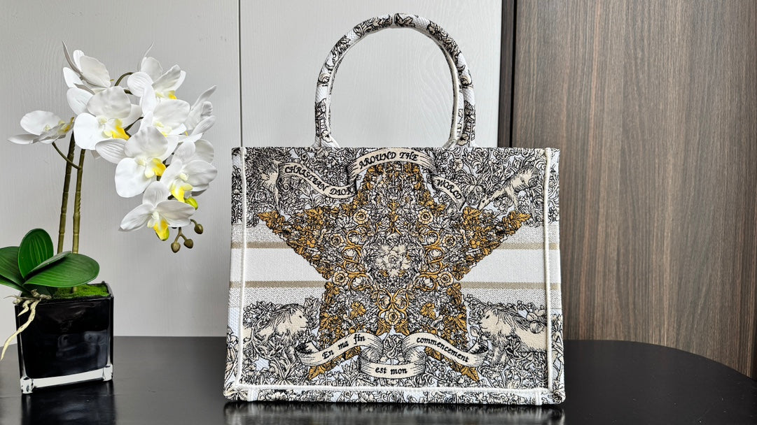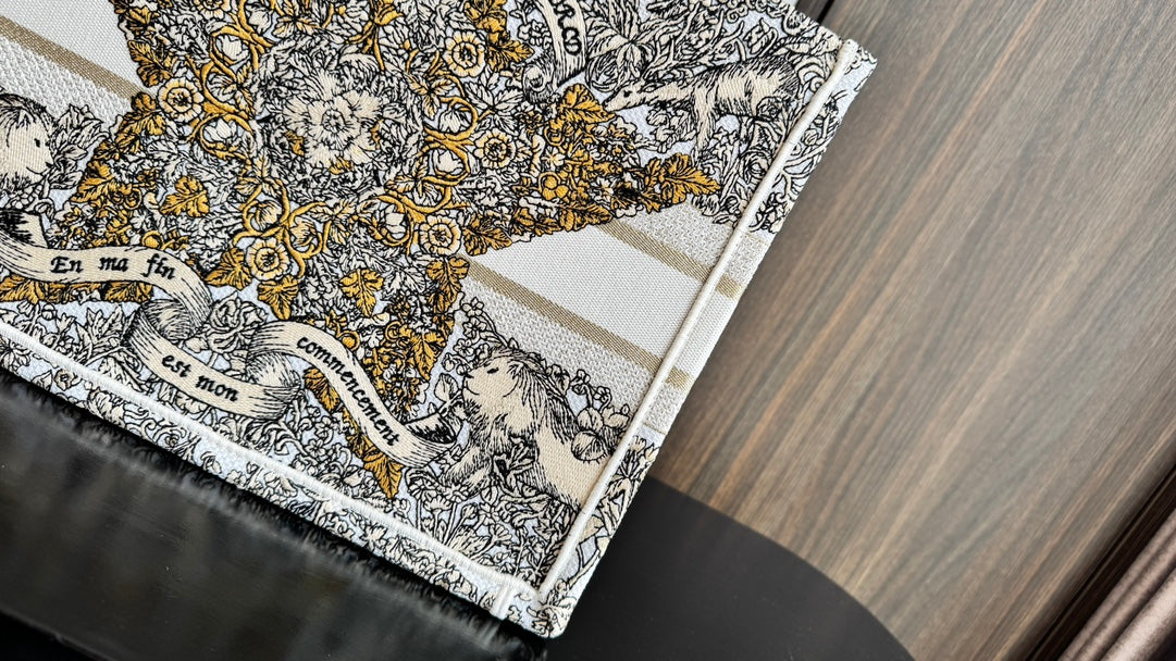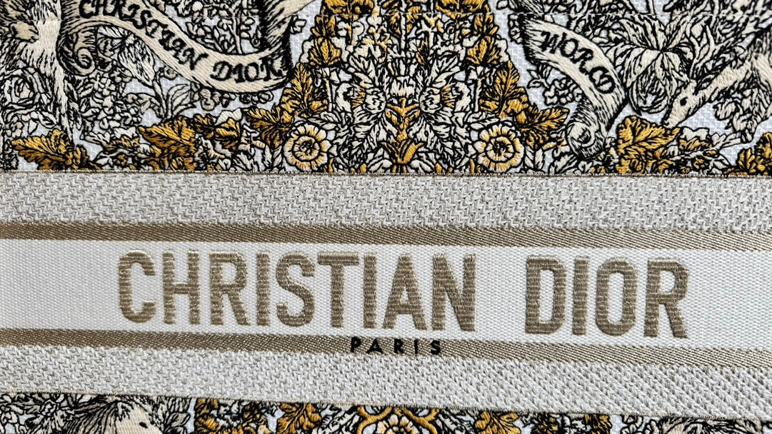 CD Book Tote 36.5 Beige White Canvas Around The World