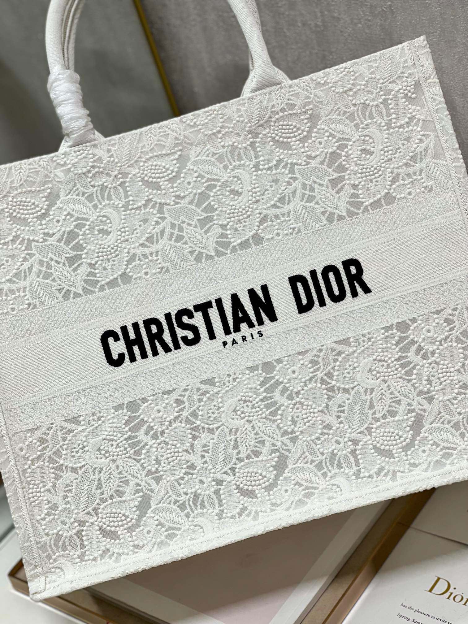 CD Mesh White Book Tote 42cm Bag Canvas 336561
