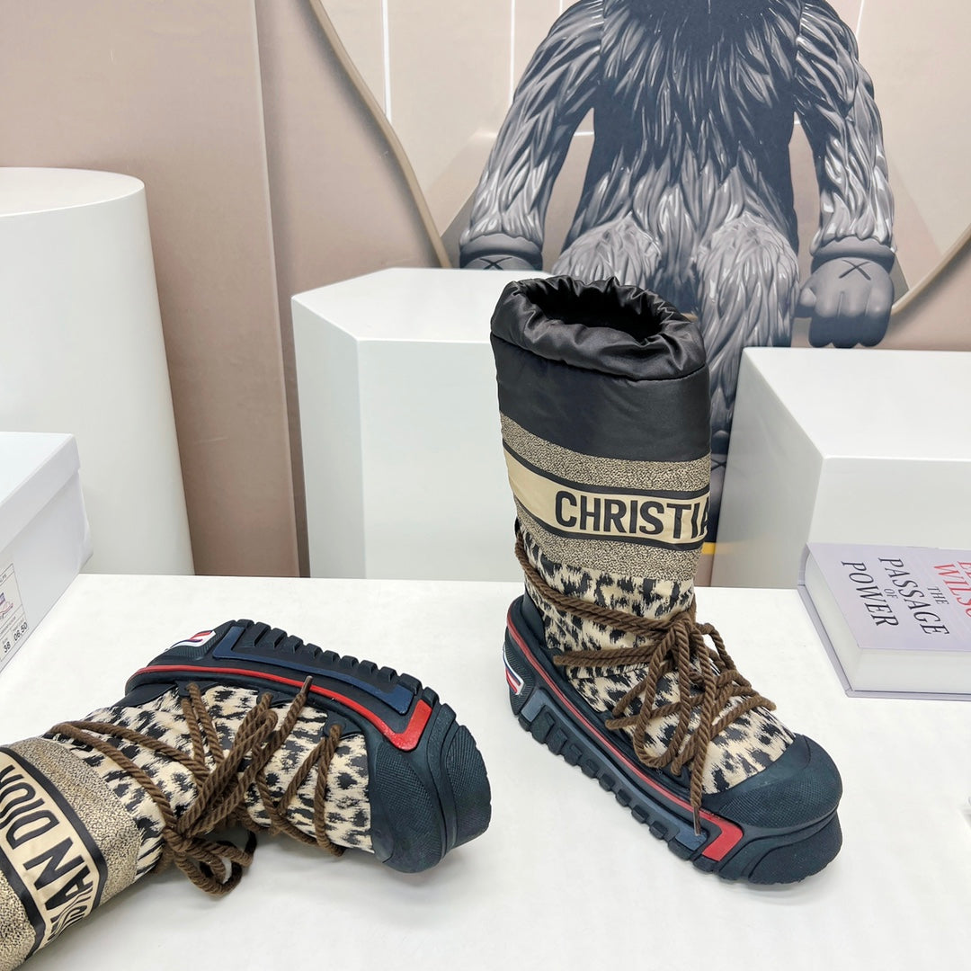 CD Platform Snow Boots Black Beige Cowhide Nylon Fabric 539655
