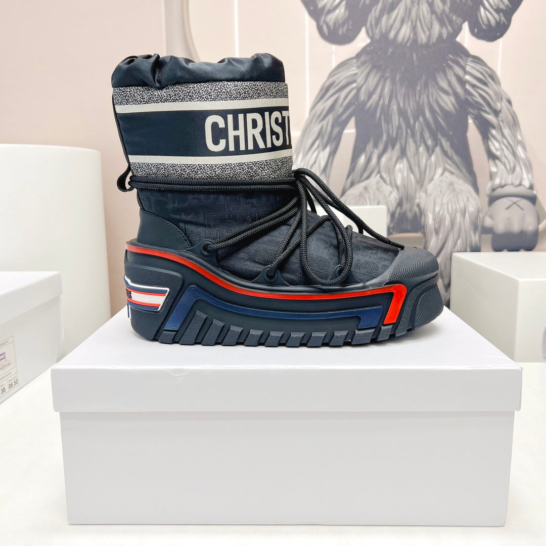CD Snow Ankle Boots Black Red Cowhide Nylon Fabric 539658