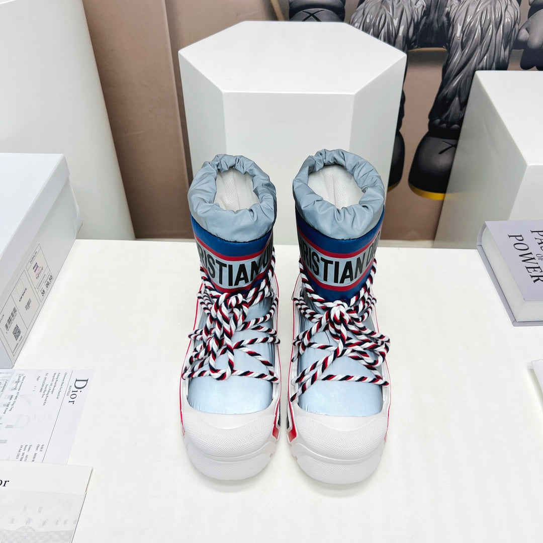 CD Snow Ankle Boots Light Blue Cowhide Nylon Fabric 539659