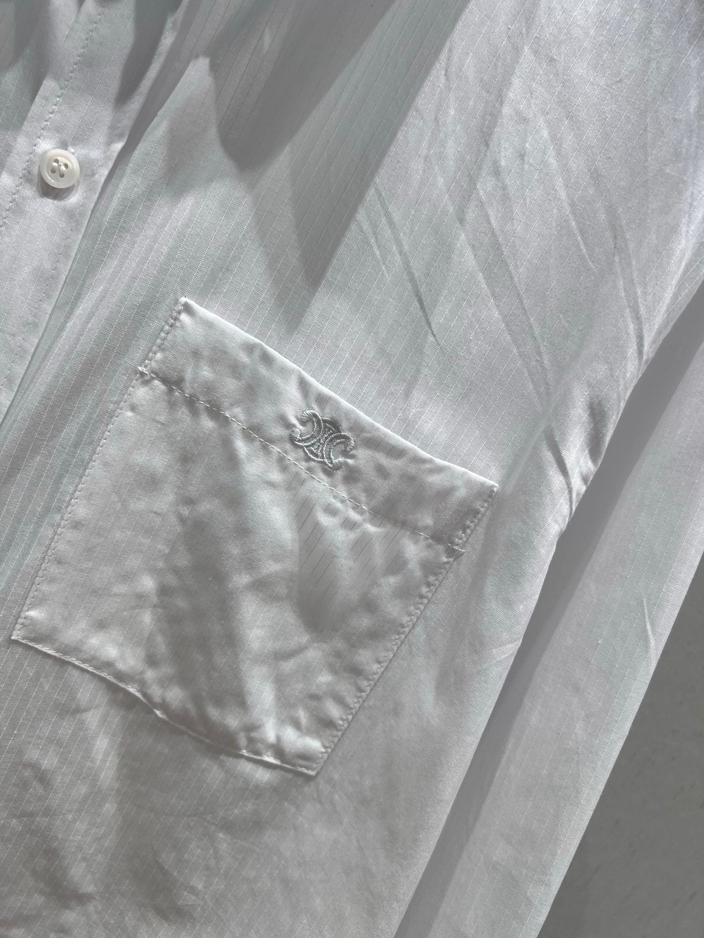 Celine 25 Striped Long-sleeved Shirt White Cotton 217877