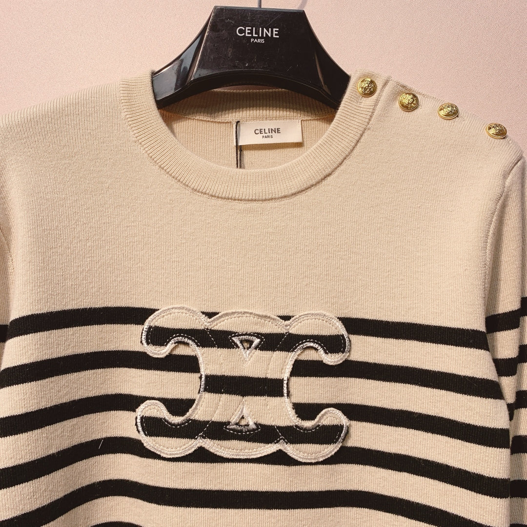 Celine 25 Striped Sweater Cream Black Wool 293418
