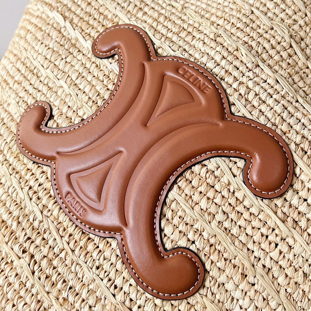 Celine Medium Supple Classic Panier 30cm Brown Calfskin Beige Raffia