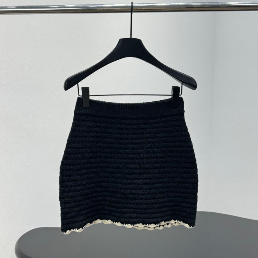 Chanel 2026 Crochet Knit Mini Skirt Black Wool