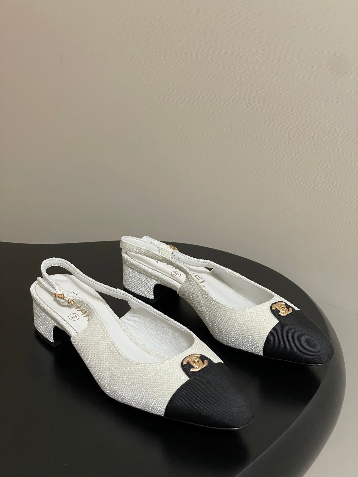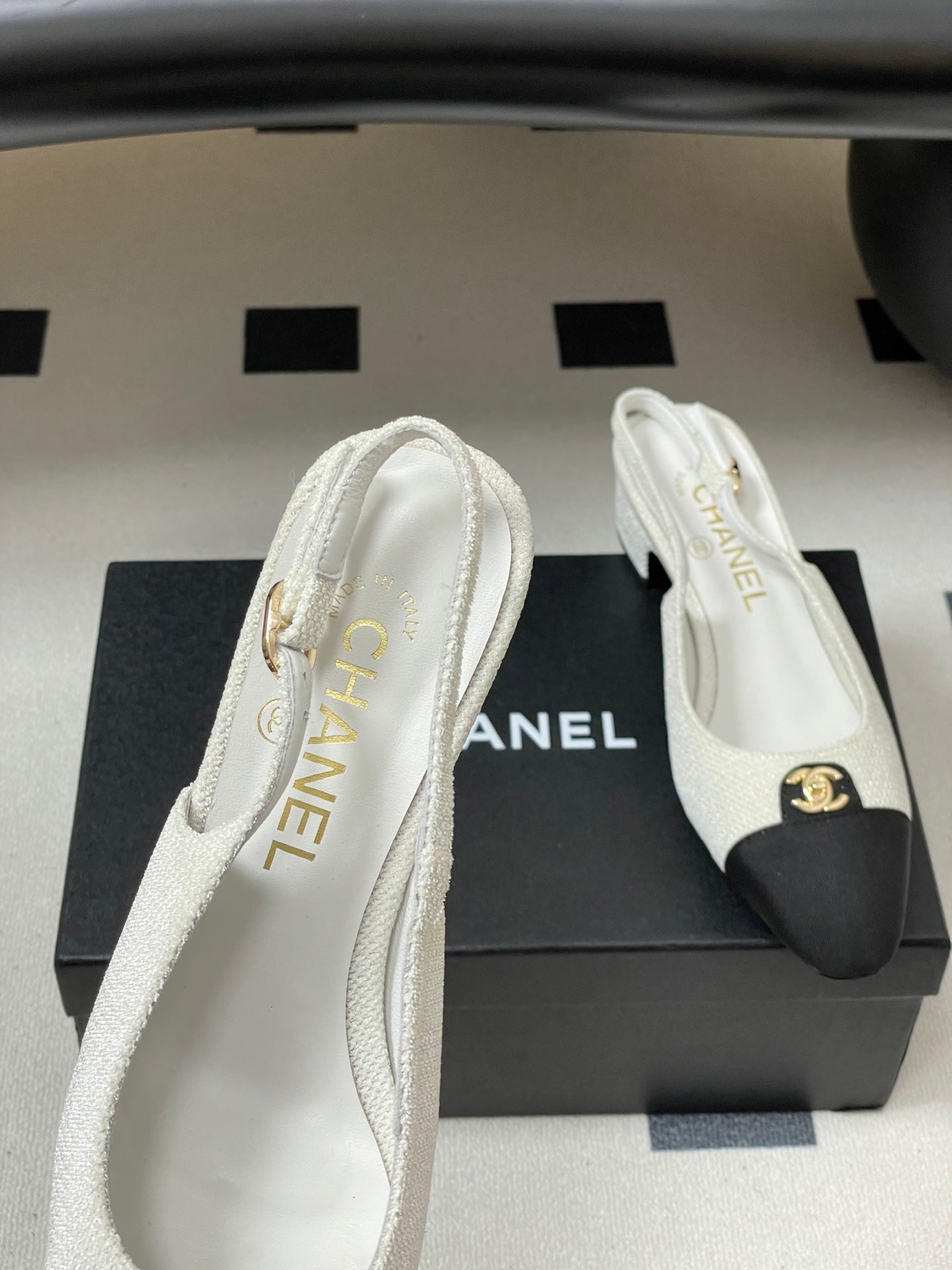 Chanel 25 Slingback Black White Lambskin Fabric 473211