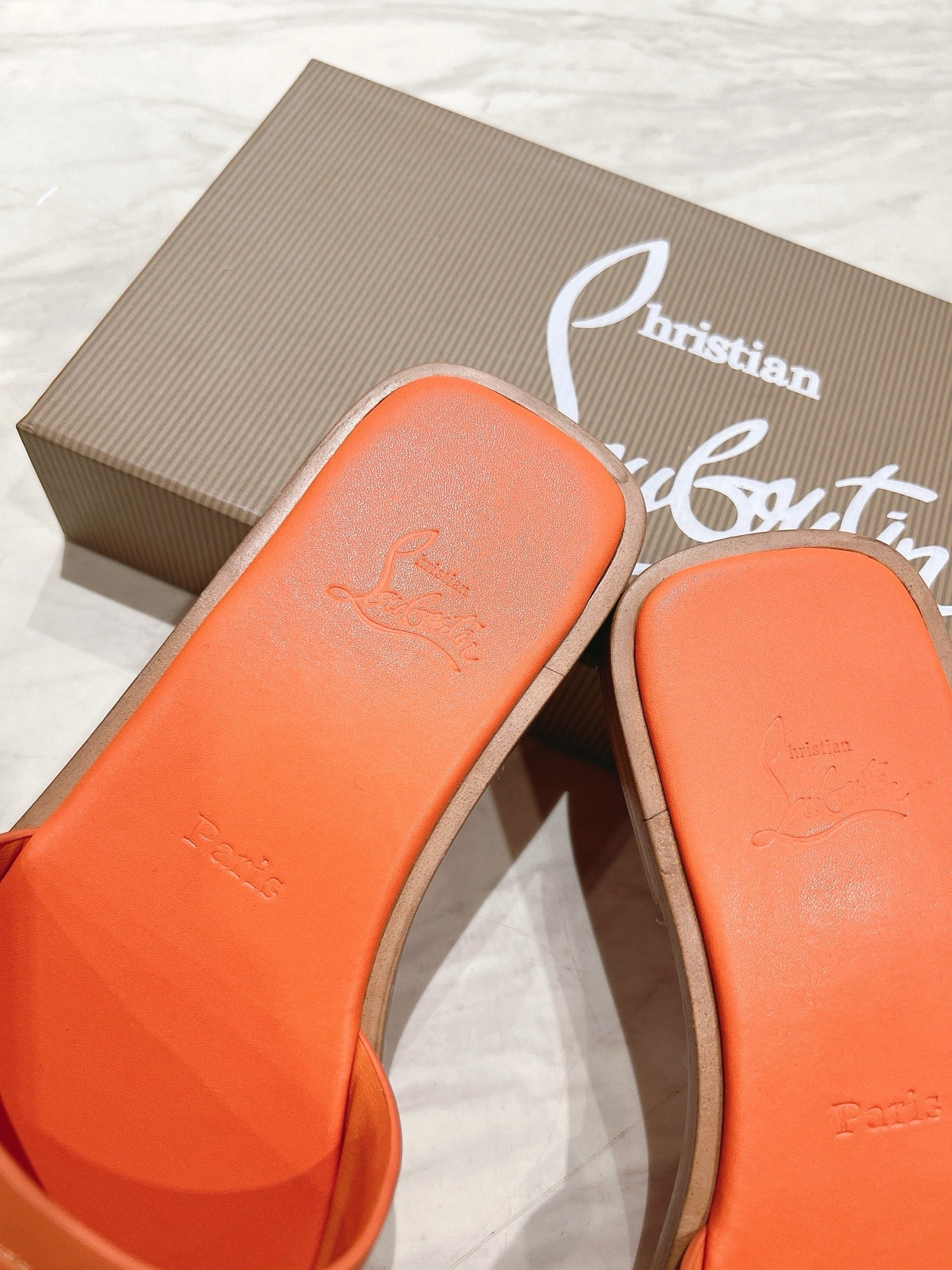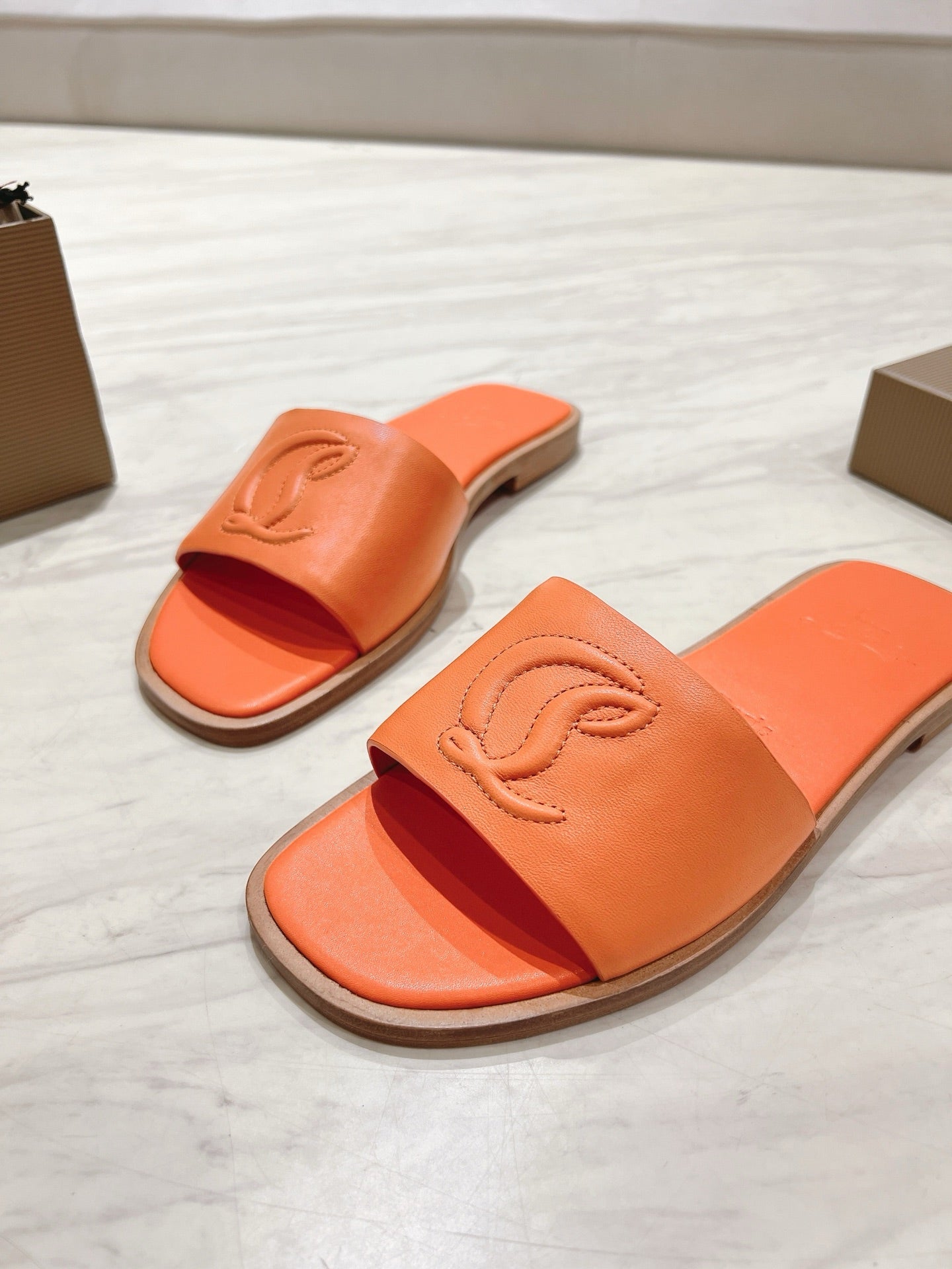 CL 25 Slippers Oranger Top Layer High Gloss Calfskin 307498