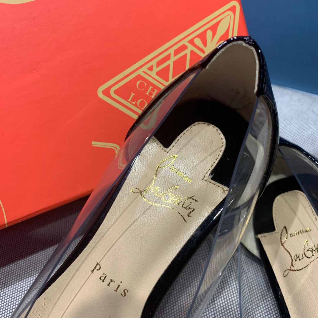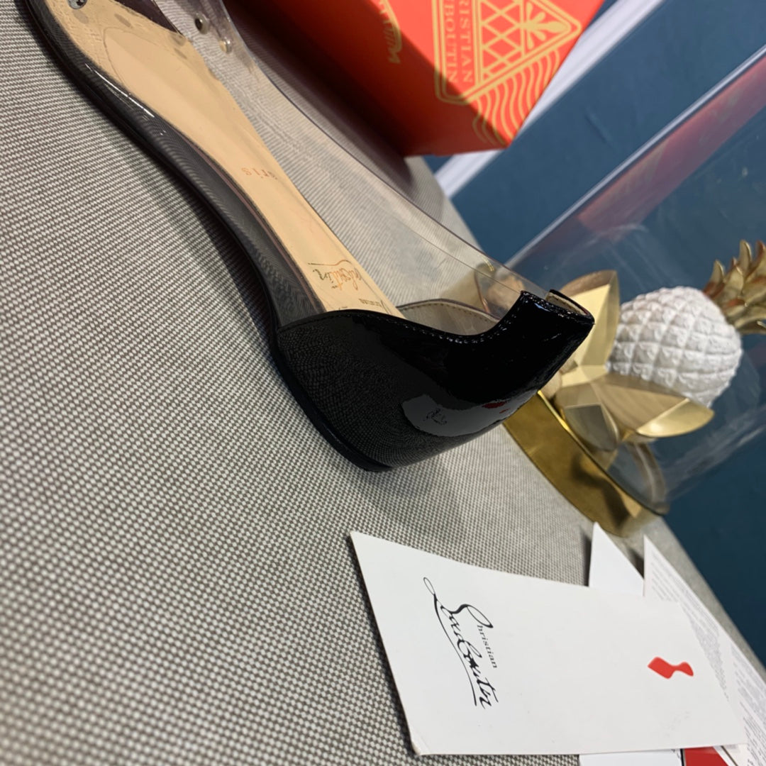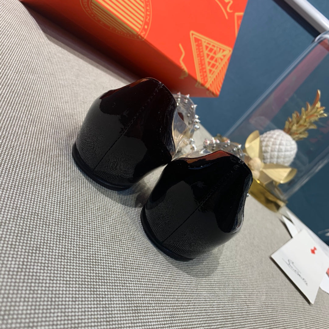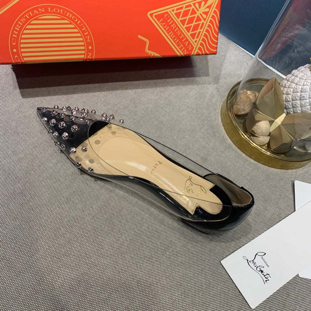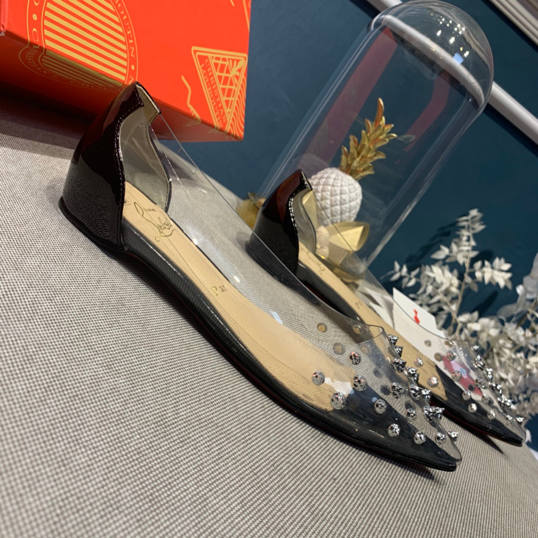 CL Collaclou Spike Clear Flat Embellished Pvc and Patent Leather Black