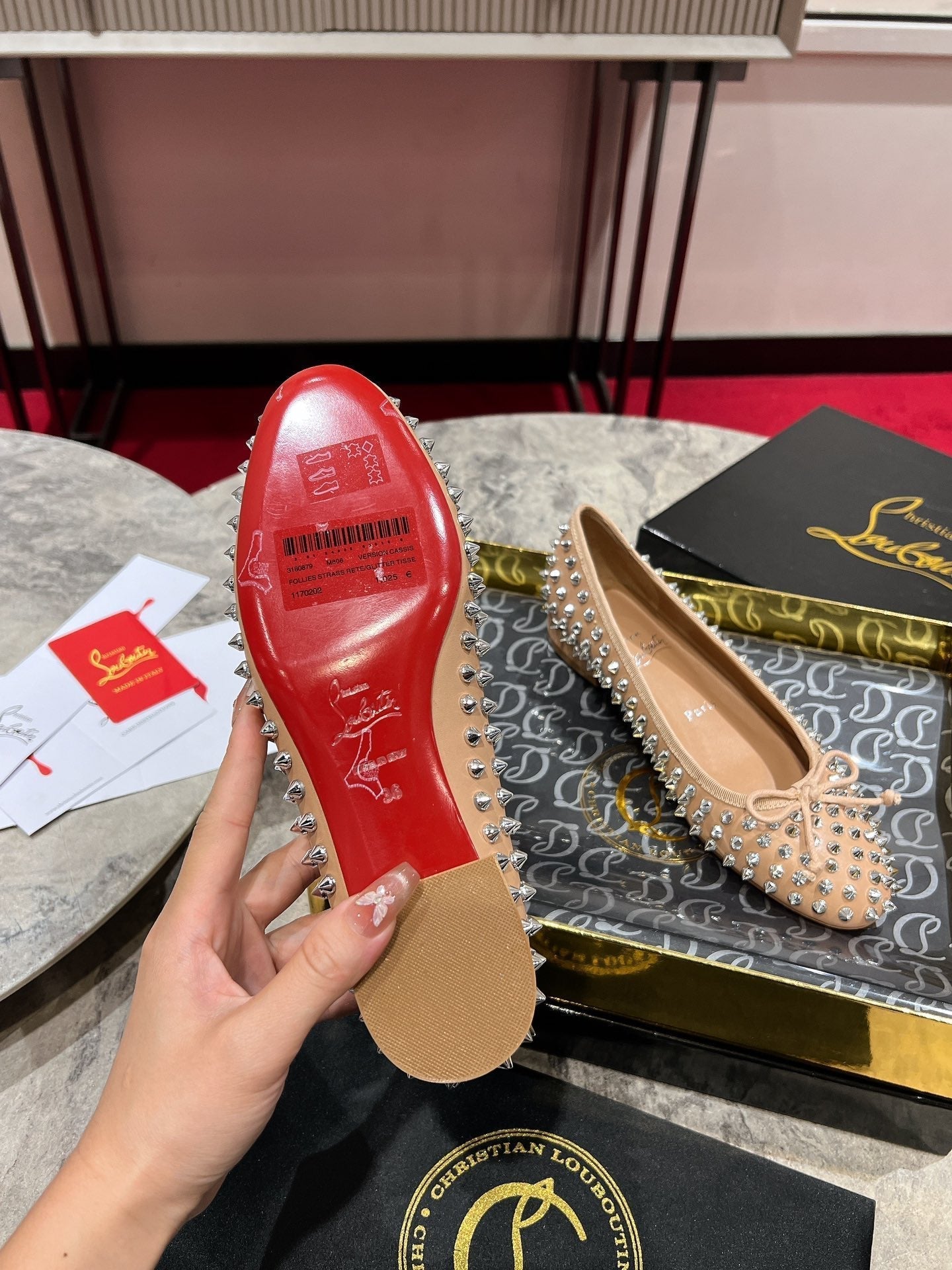 CL Sweetie Jane Spikes Ballerina Pump Nappa Leather Blush Beige