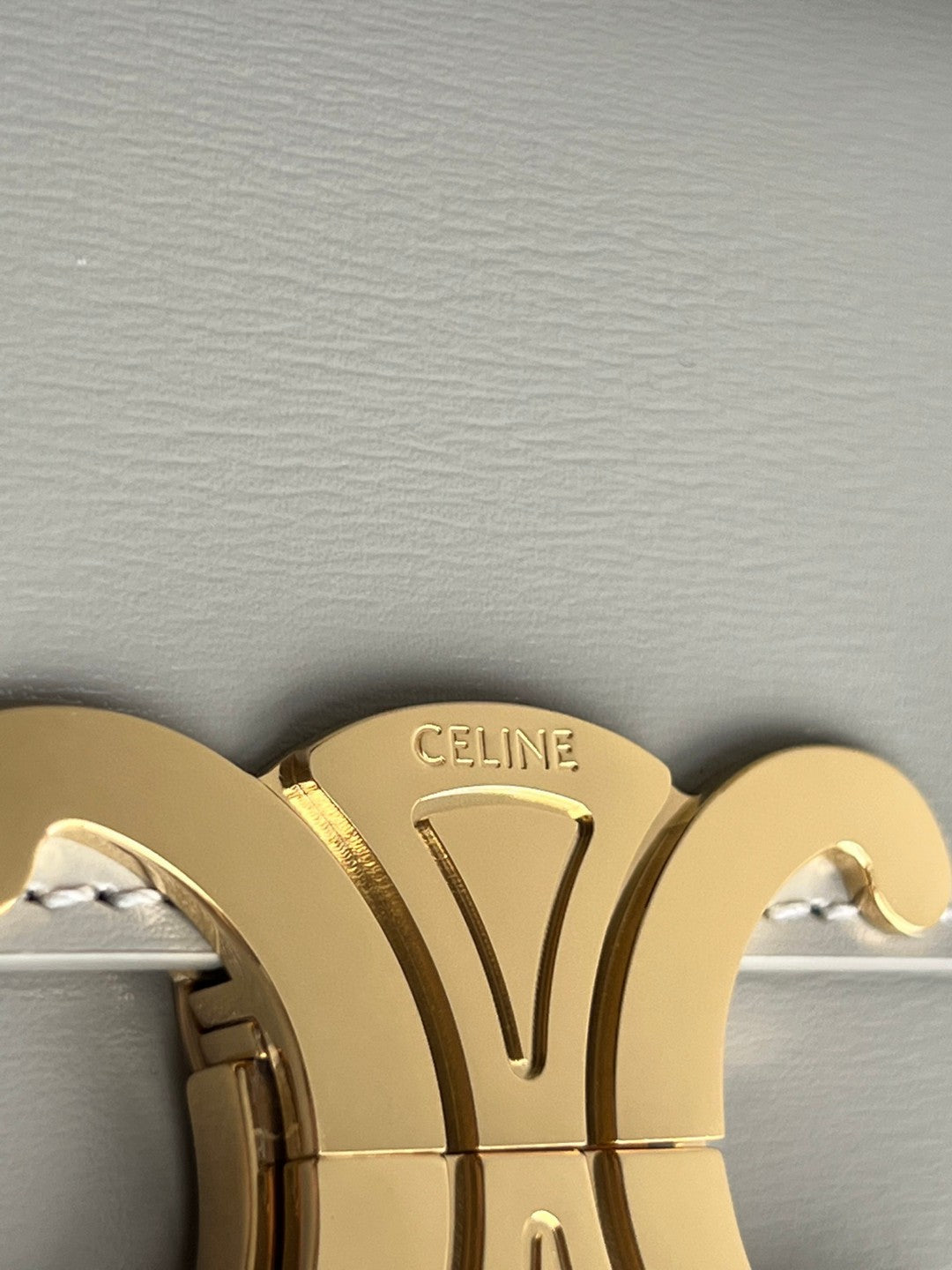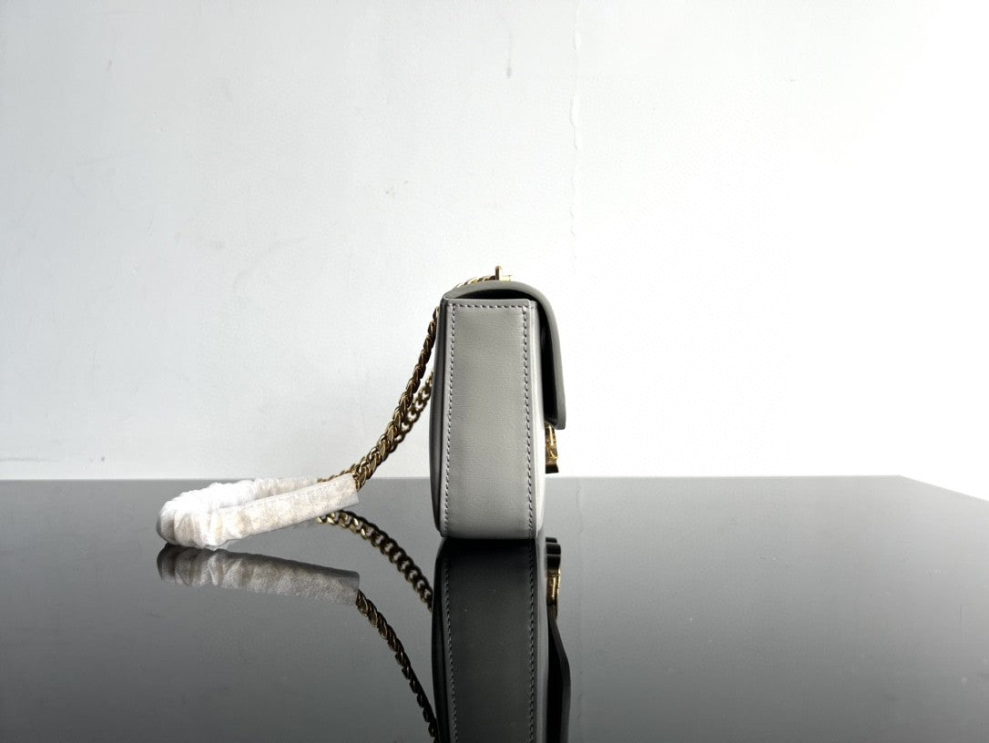- Color: Grey leather, gold hardware
