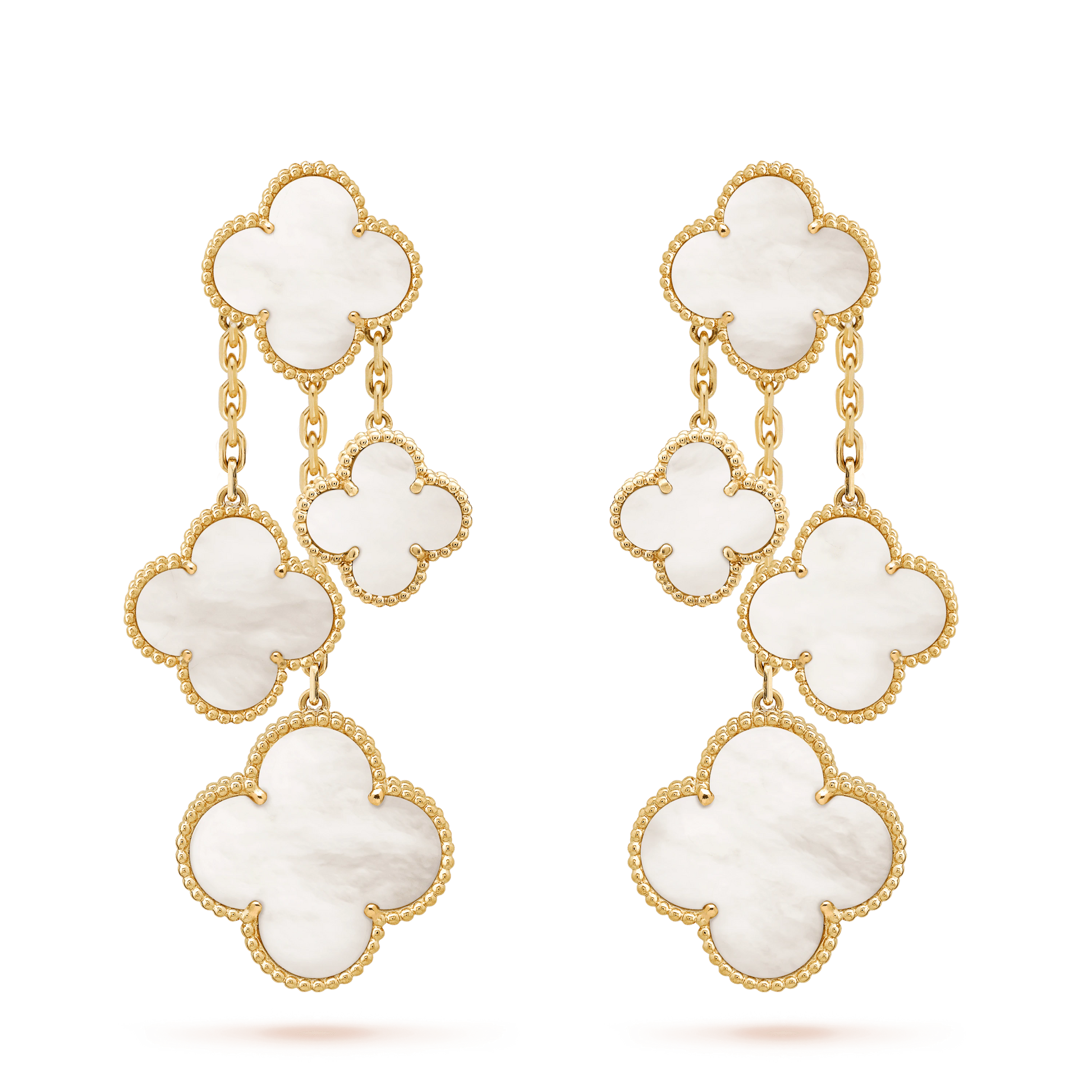 CLOVER EARRINGS WHITE MOP 4 MOTIFS GOLD