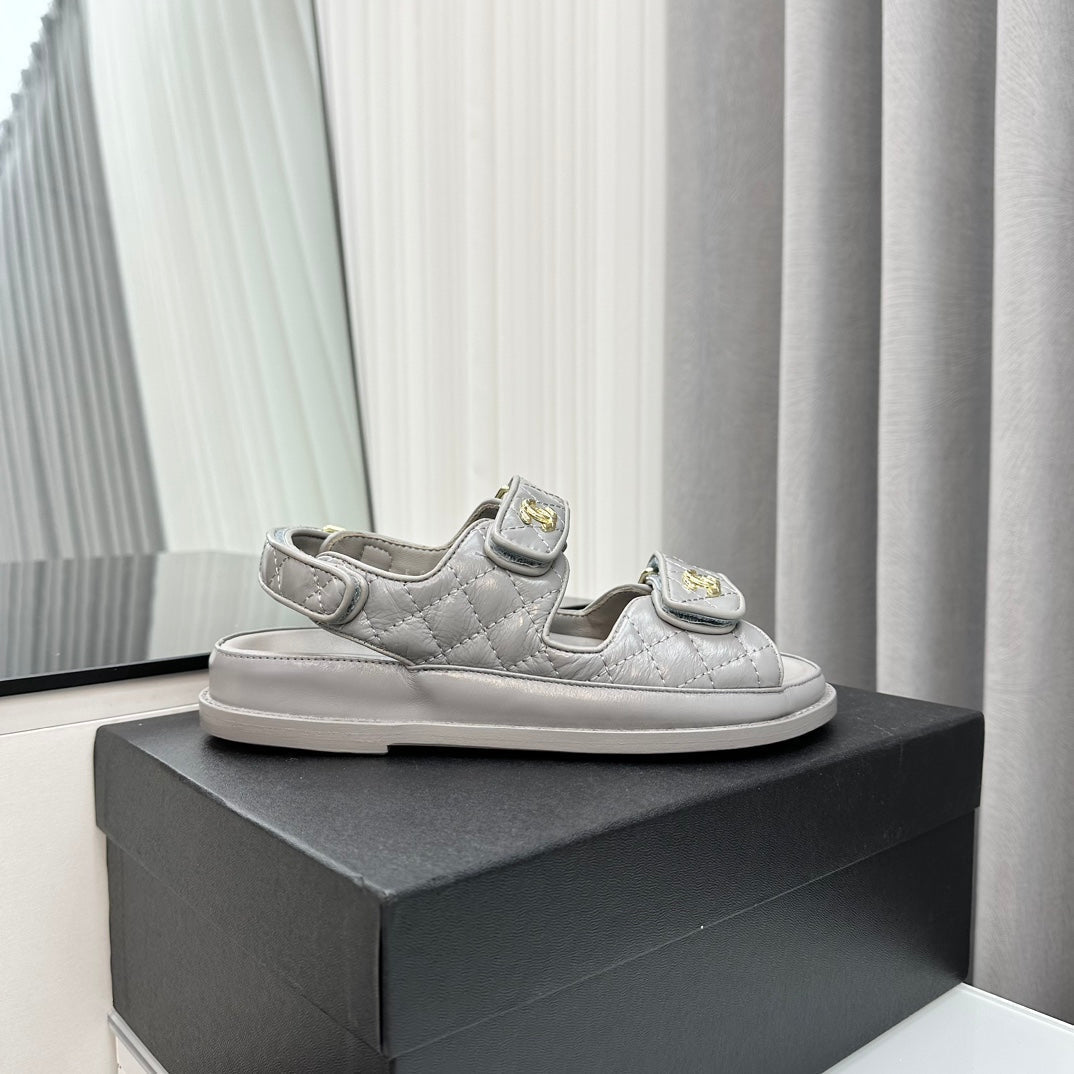 dad sandals grey patent lambskin