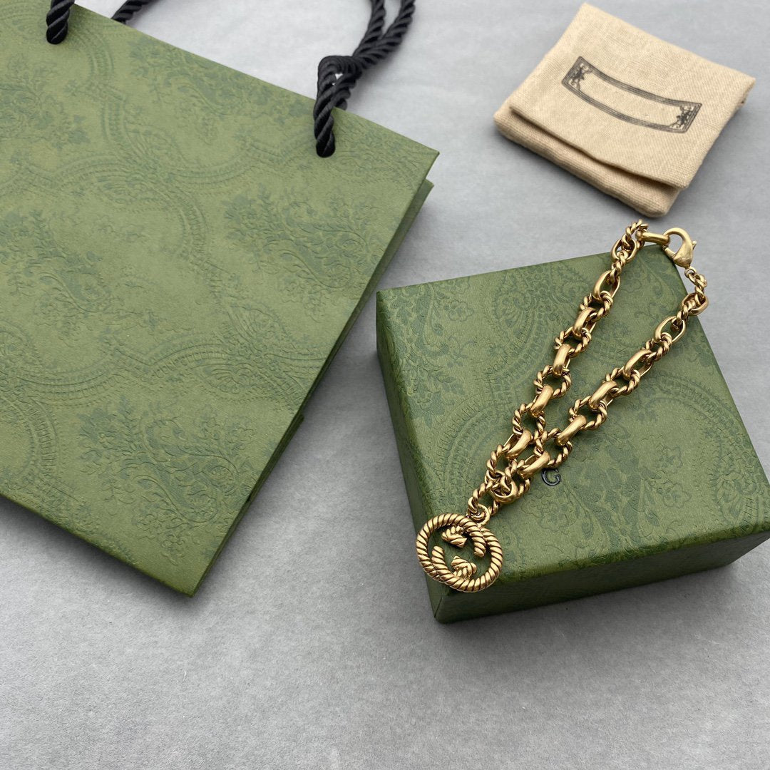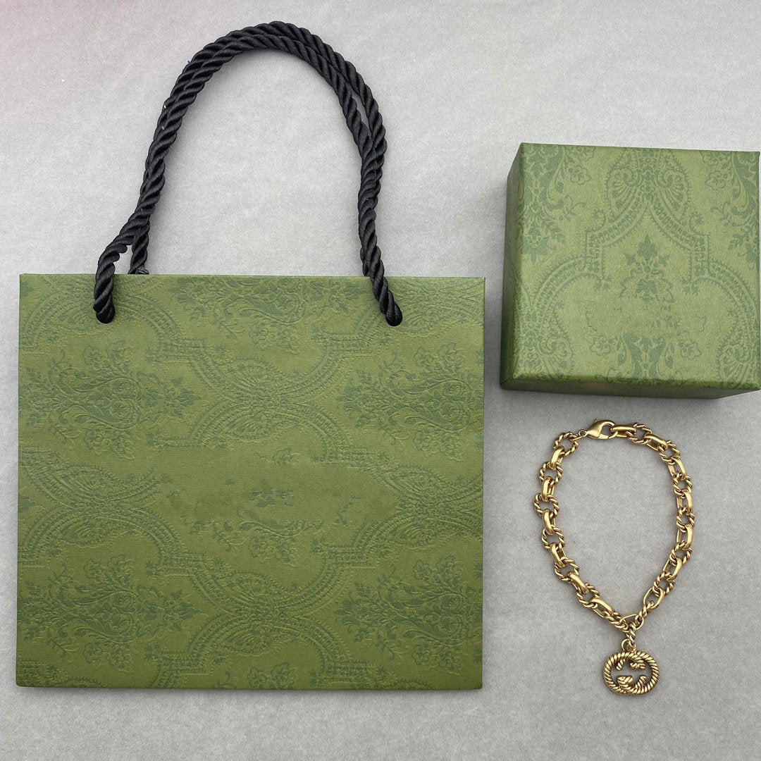 FANCY LINK CHAIN GOLD BRACELET ALPHABET
