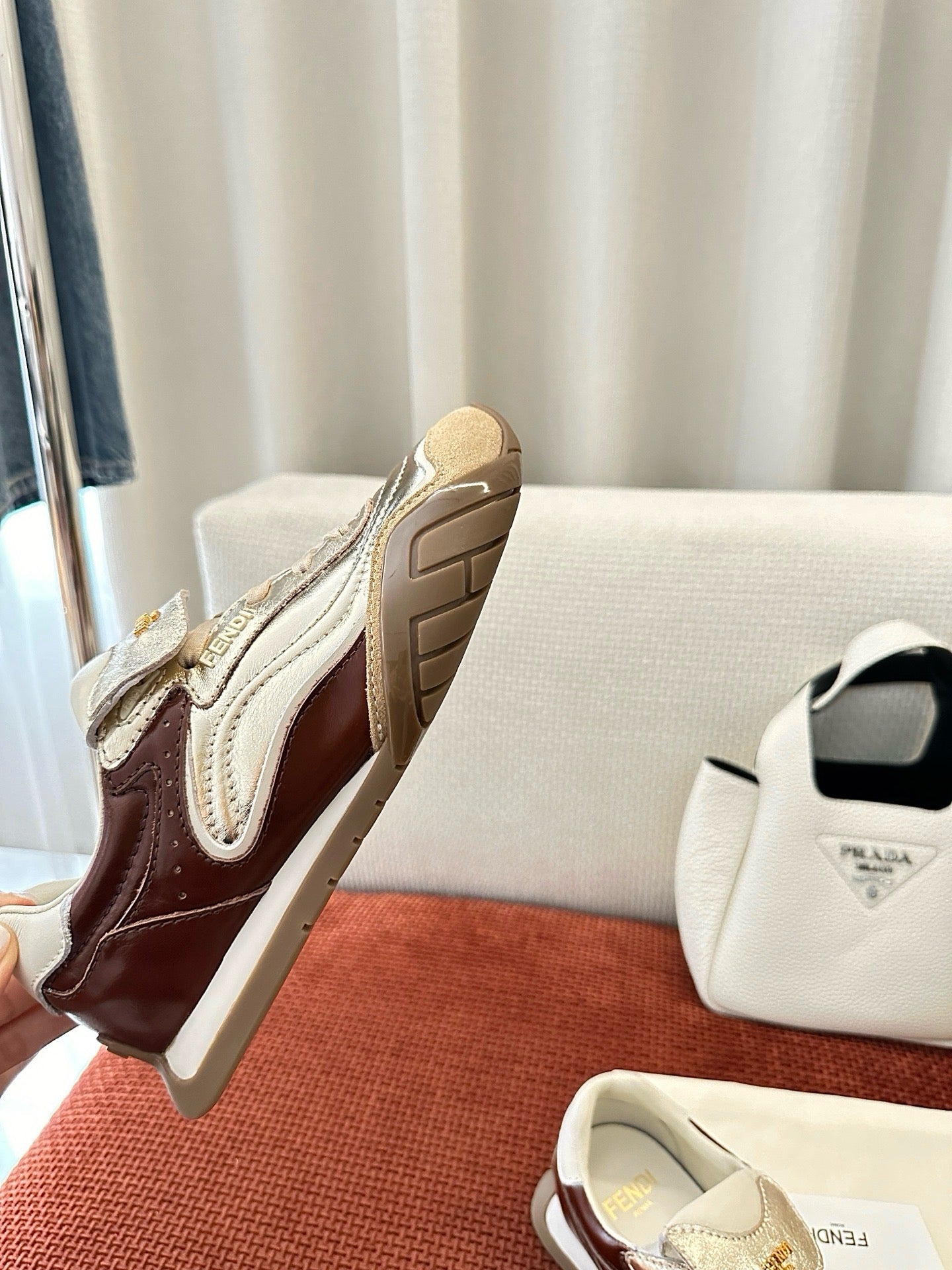 Fendi 2025 Wave Pulse Sneaker Silver Brown Suede Cowhide 562139