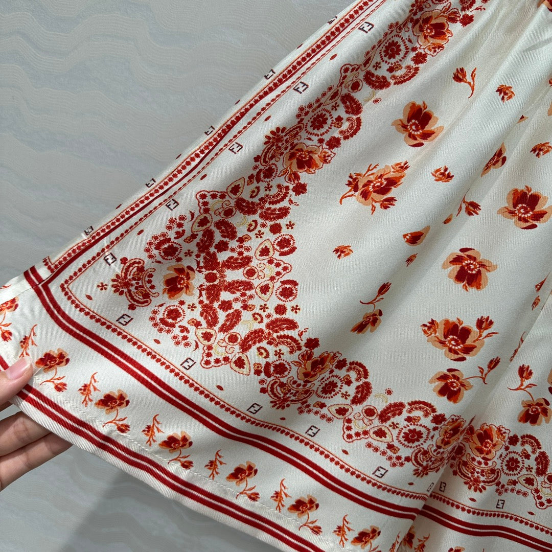 Fendi Flower Short Red Silk