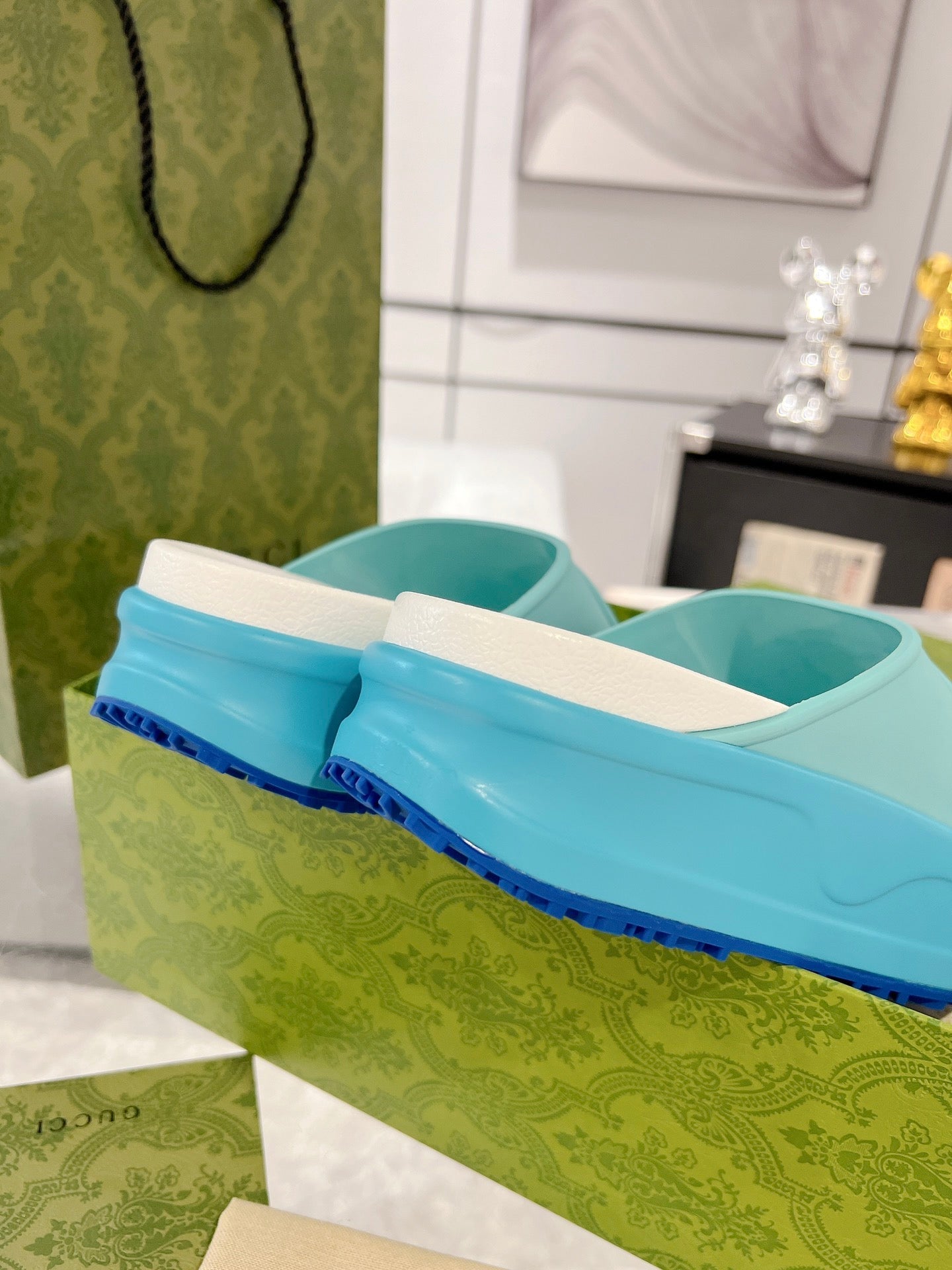 GC 25 Interlocking G 50mm Slide Sandal Sky Blue White Cowhide 292385